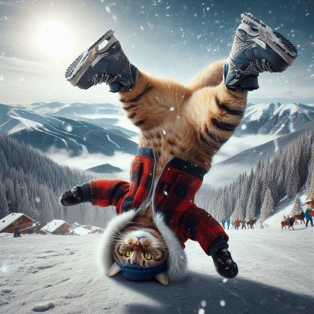 1/30追記:「ウィンタースポーツをする猫」が2024年1月28日のAIフォトデイリーランキング9位に入りました!