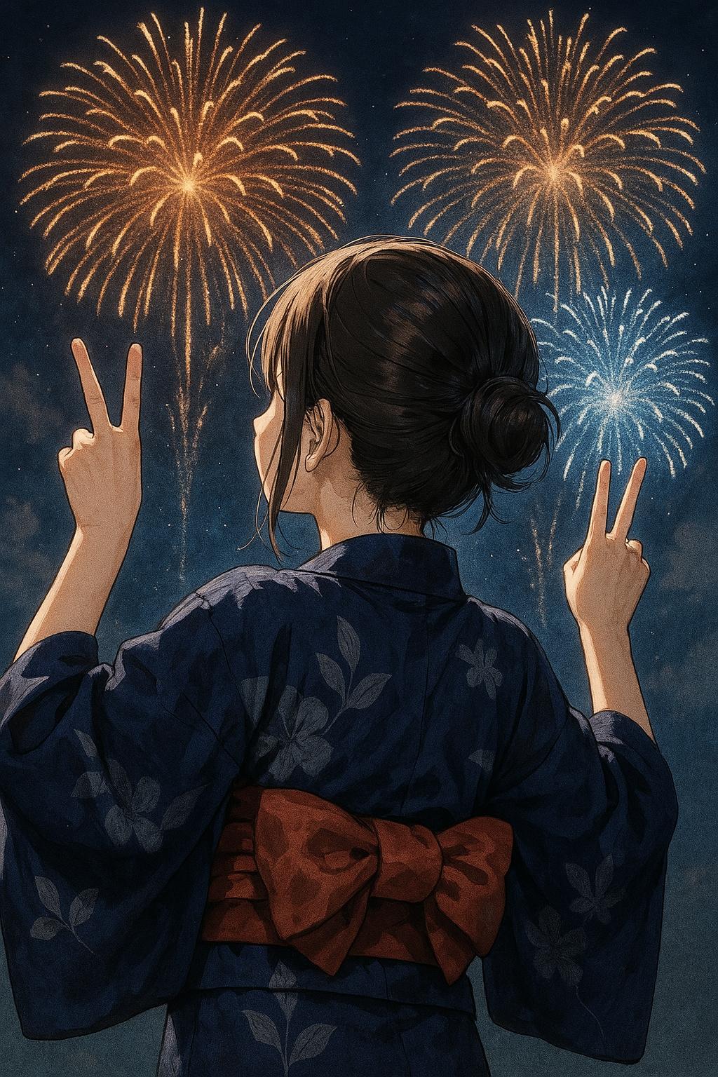 後ろ姿花火ピース