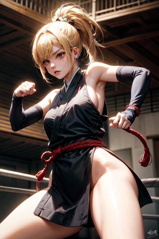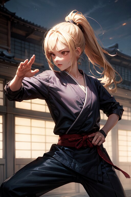 そのイメージでプロンプト組んだら凛々しい魔子ちゃんになりました。