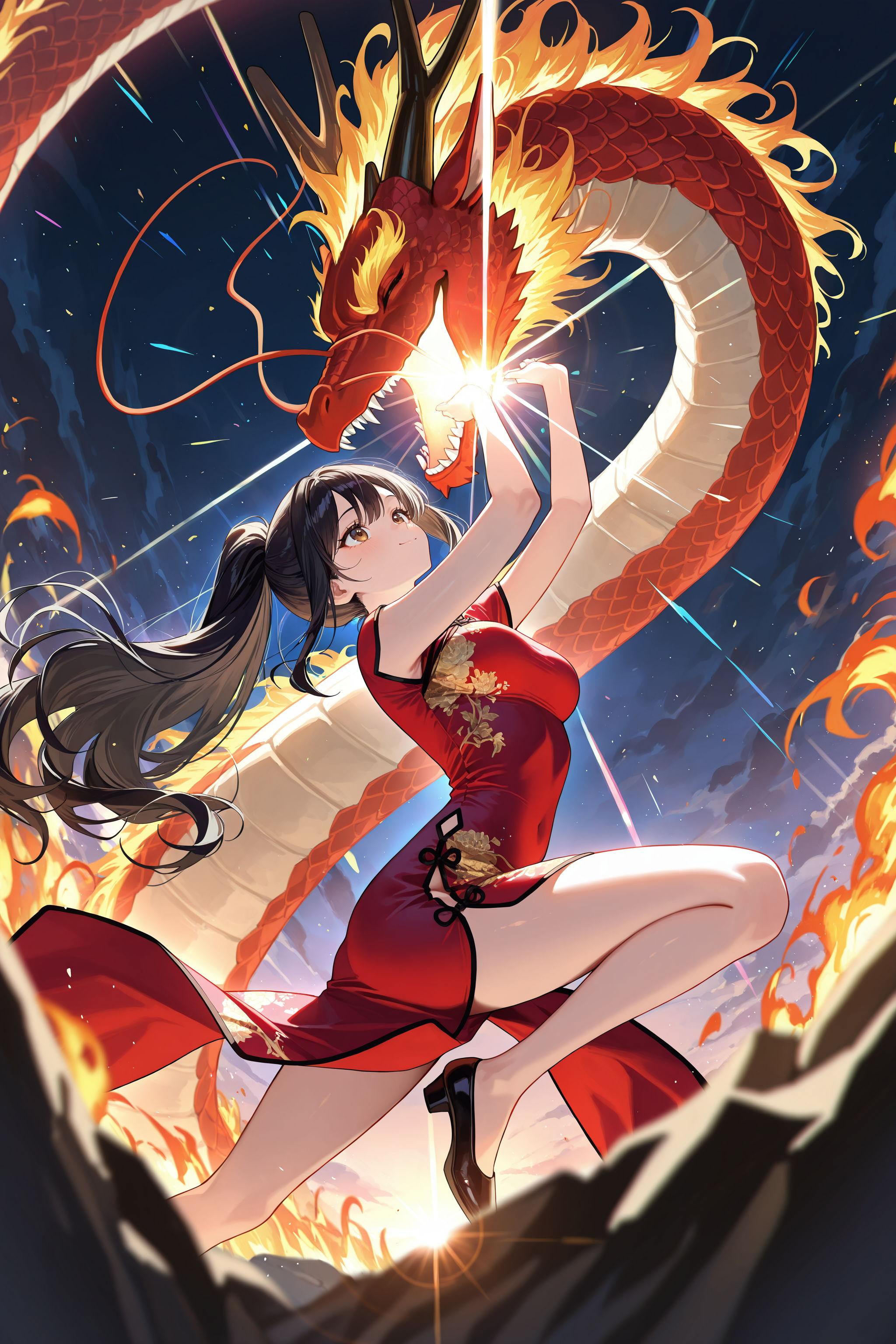 ドラゴン使いの少女(美龍さんと火竜サラマンダーさん)