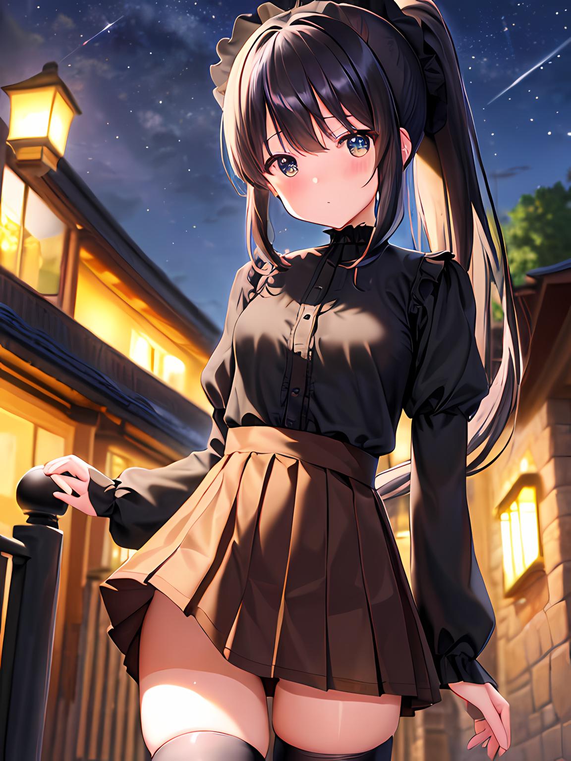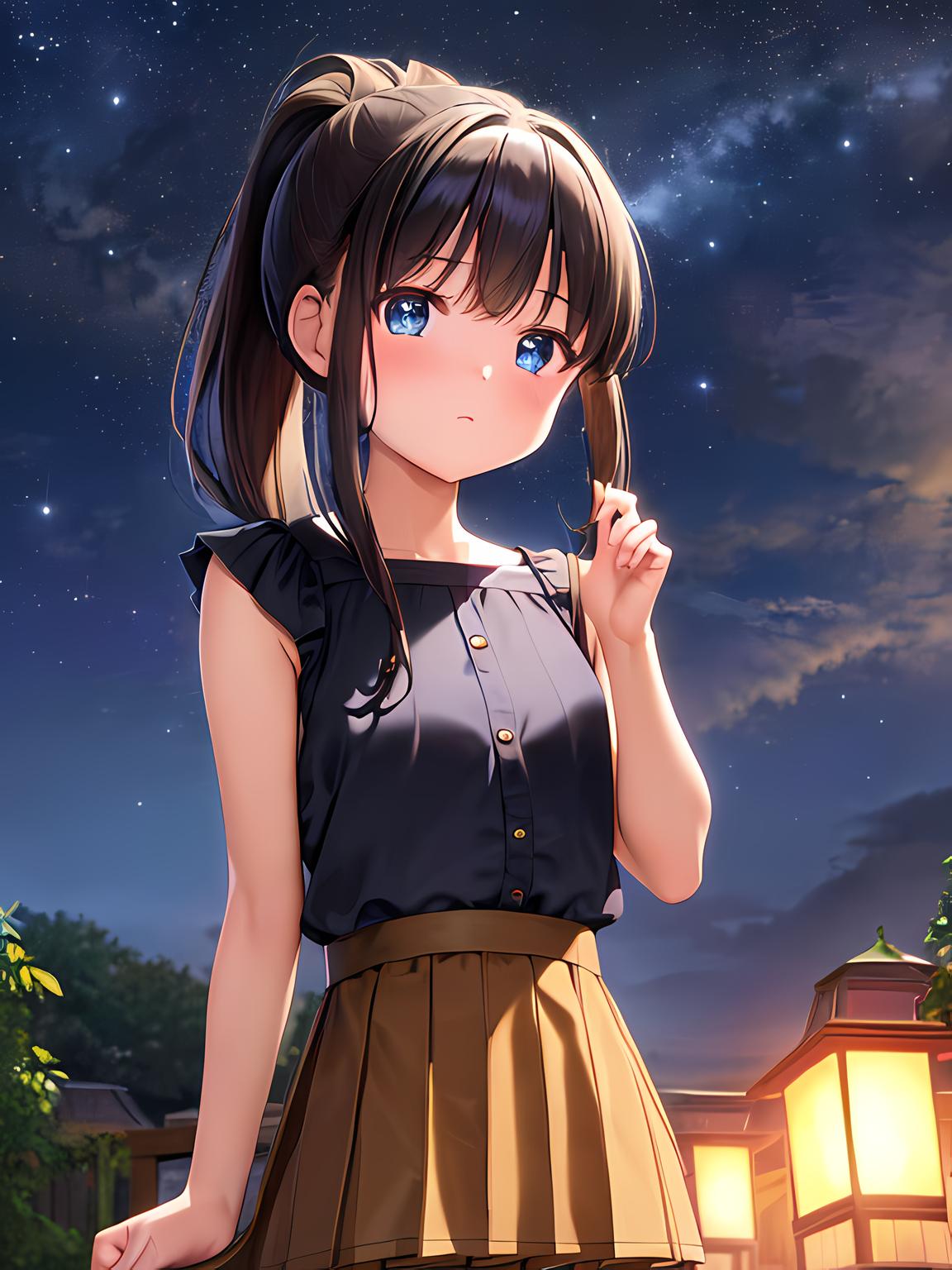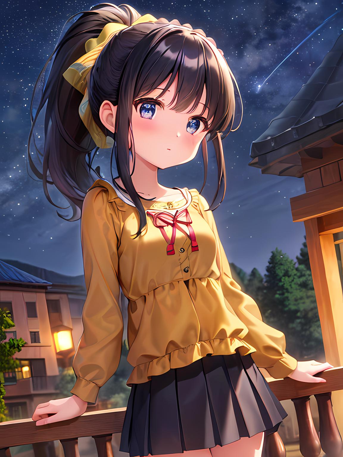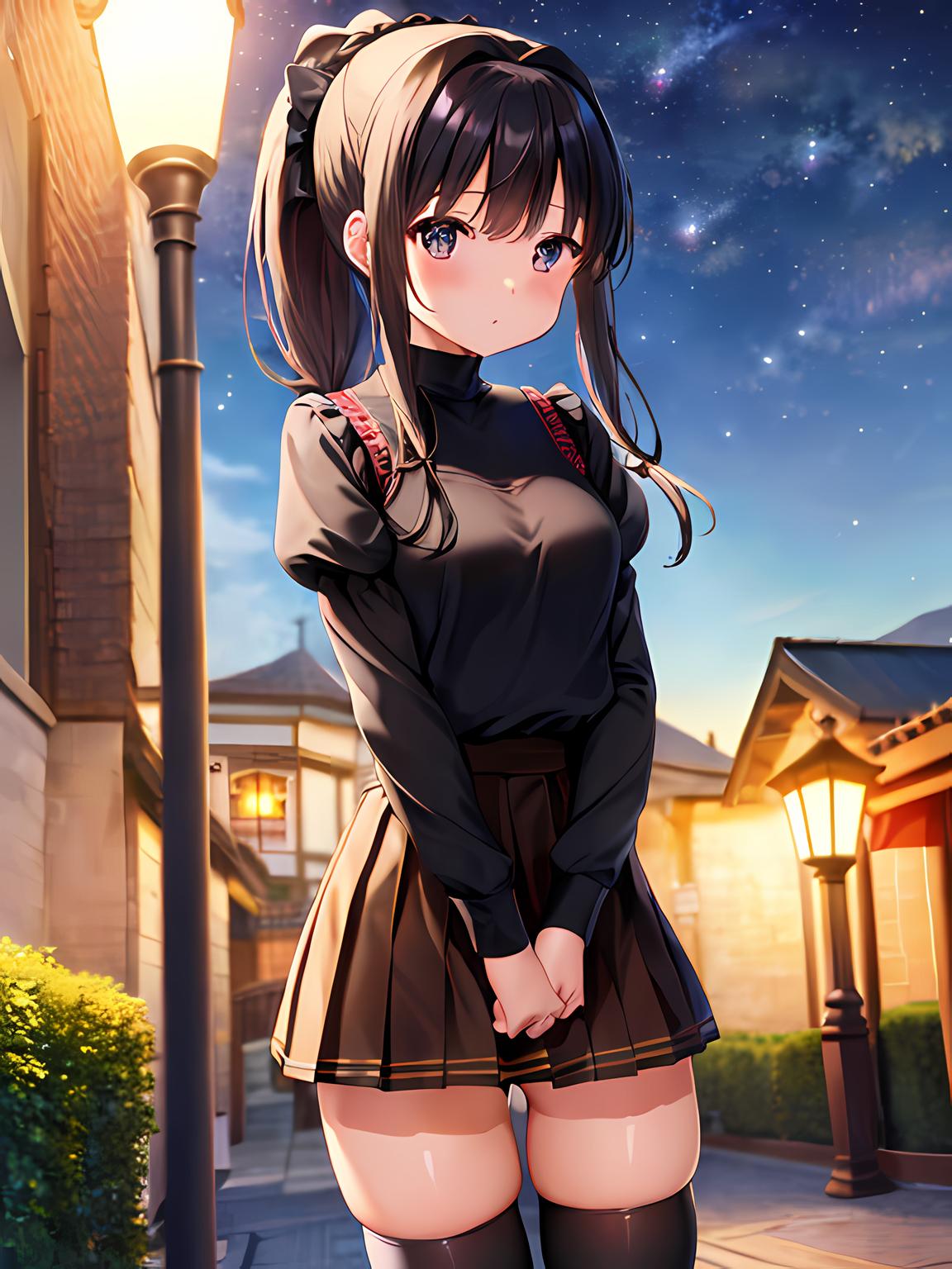 女の子はいつもの黒髪ポニーの茶瞳っ娘(お目々奇麗Ver)