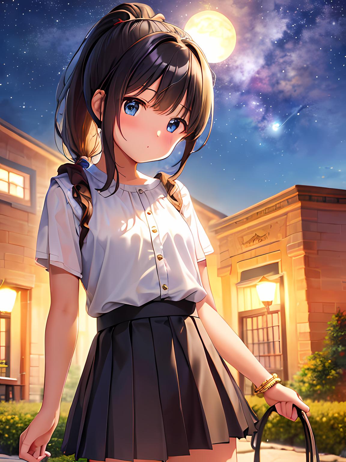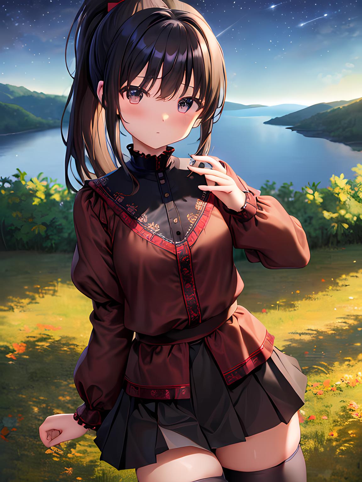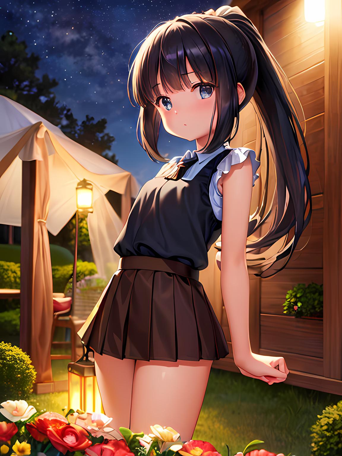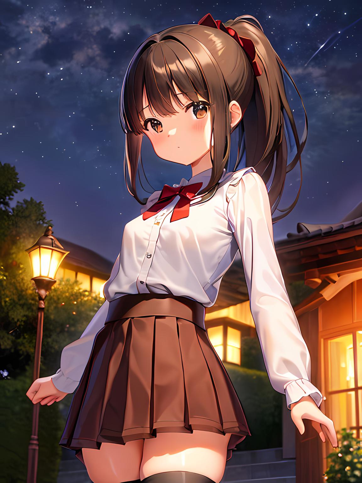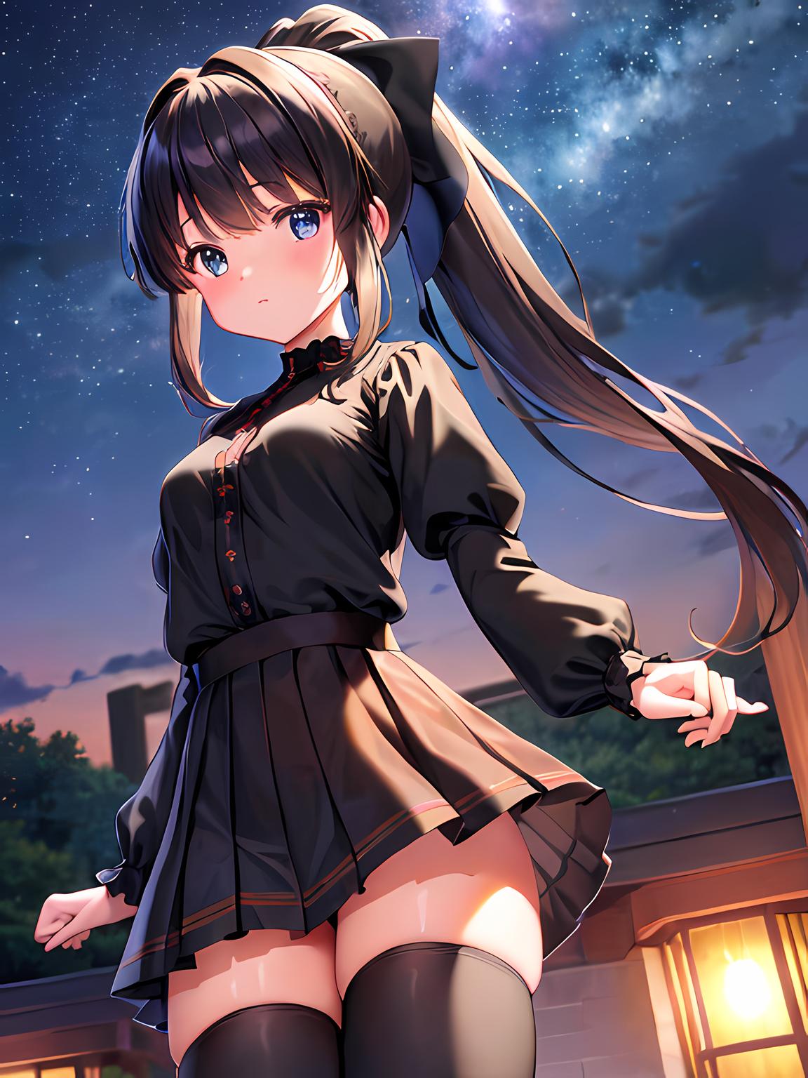 女の子はいつもの黒髪ポニーの茶瞳っ娘(お目々奇麗Ver)