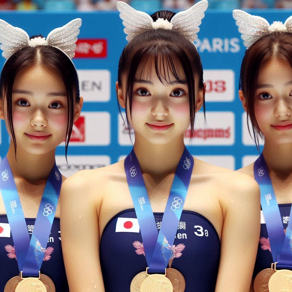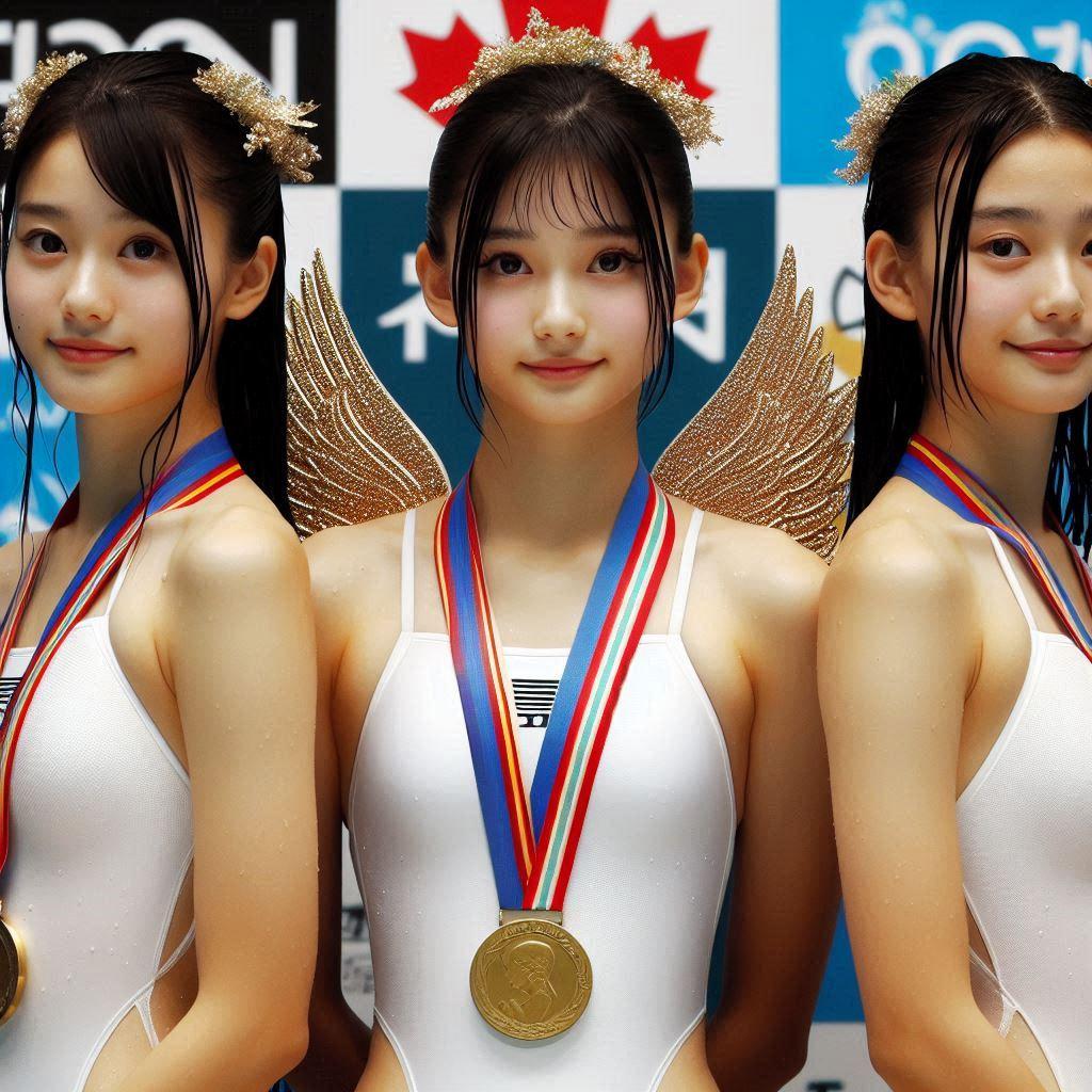 最後は、3人揃って「メダル欲しかったなぁ」の決めポーズ😁