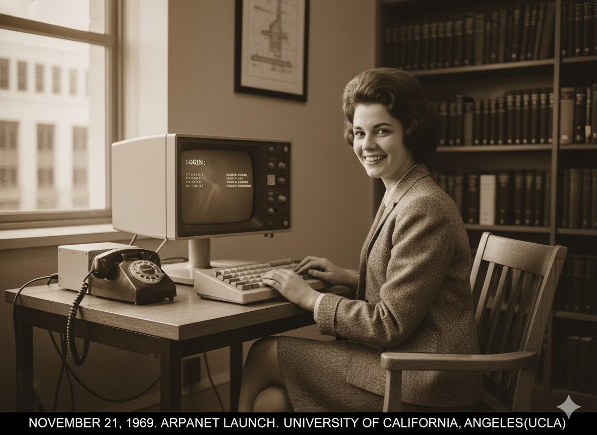 1969年11月21日、ARPANETの公開実験が始まり、アメリカの4つの研究機関が初めてネットワークで結ばれた。