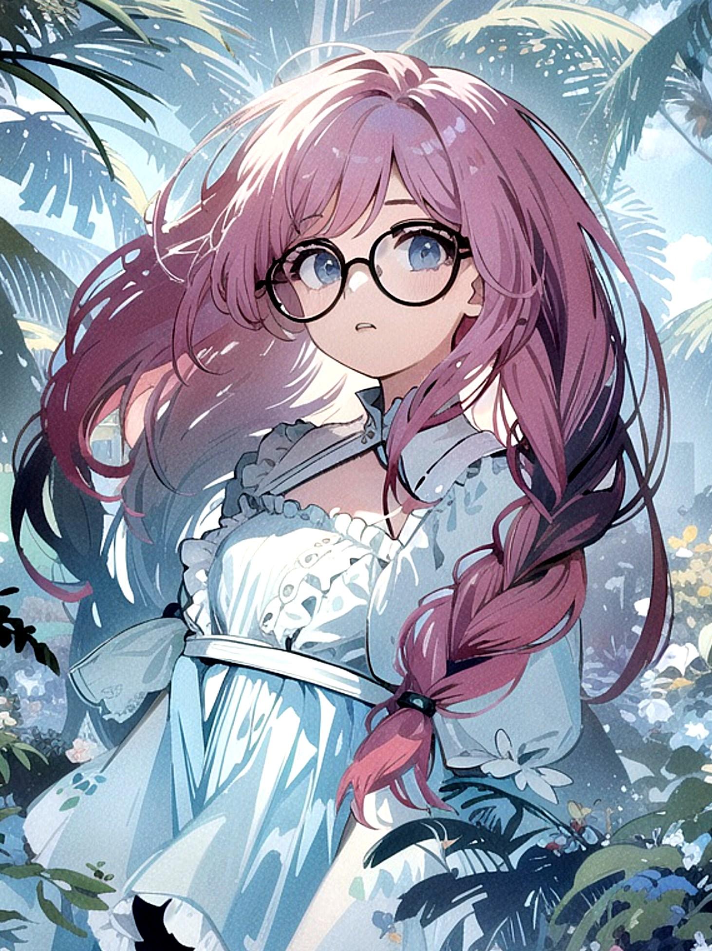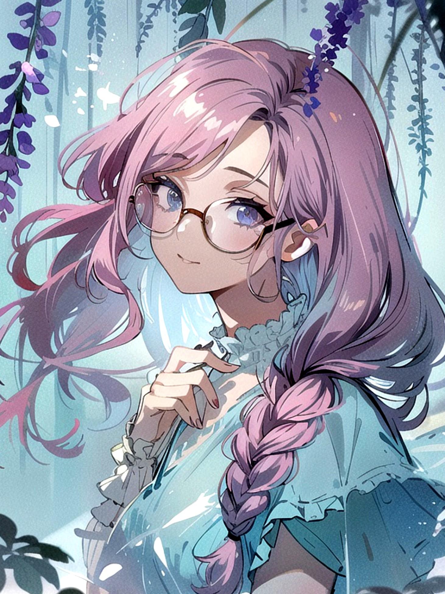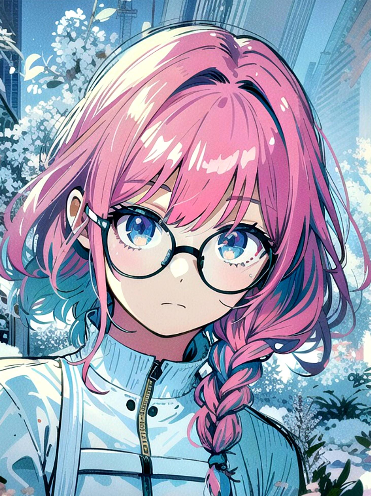 眼鏡三つ編みのピンク髪ちゃん