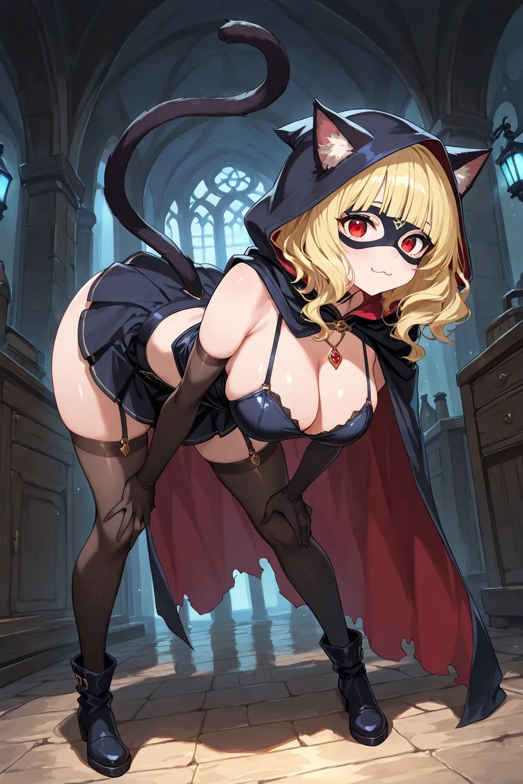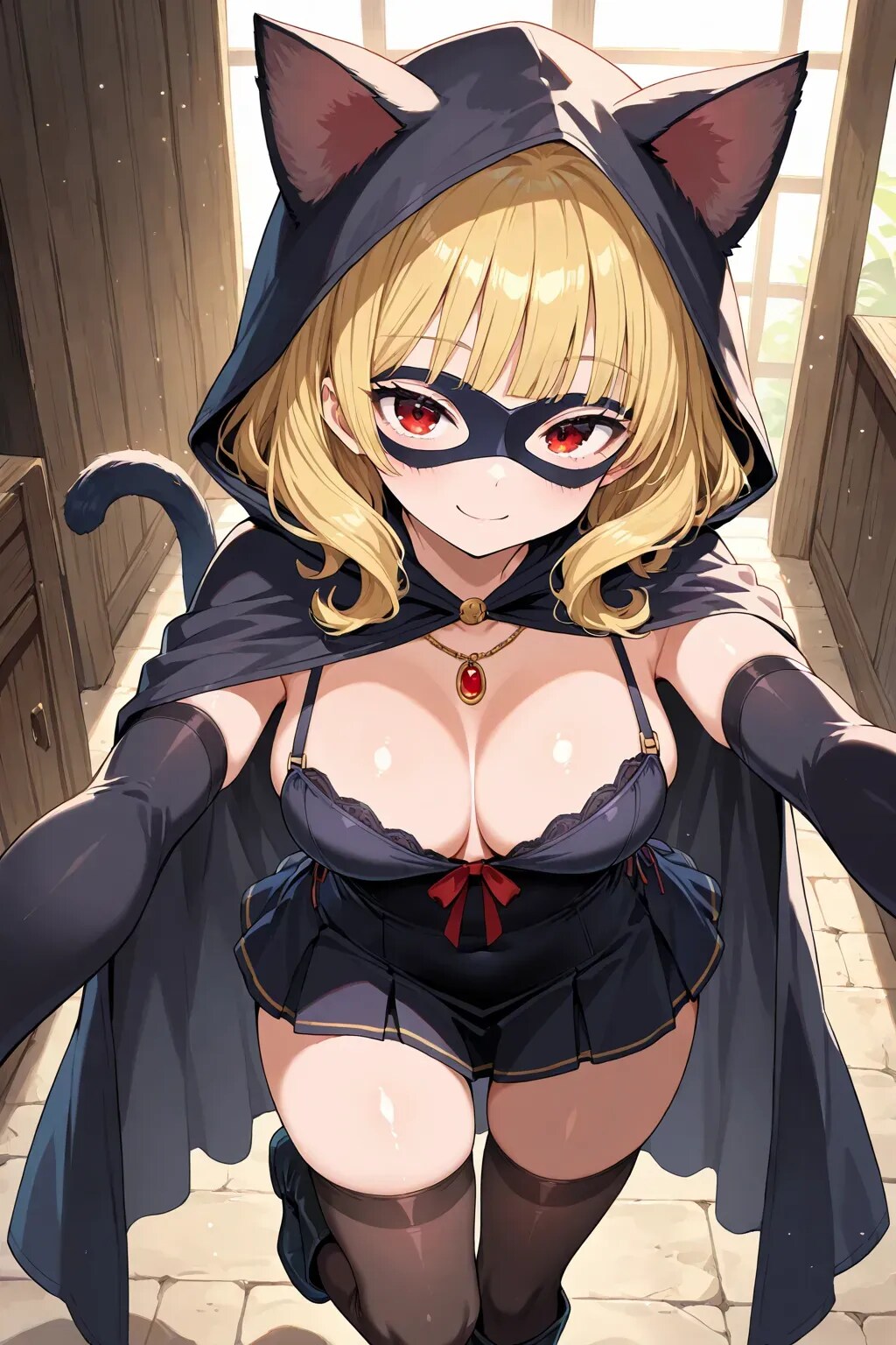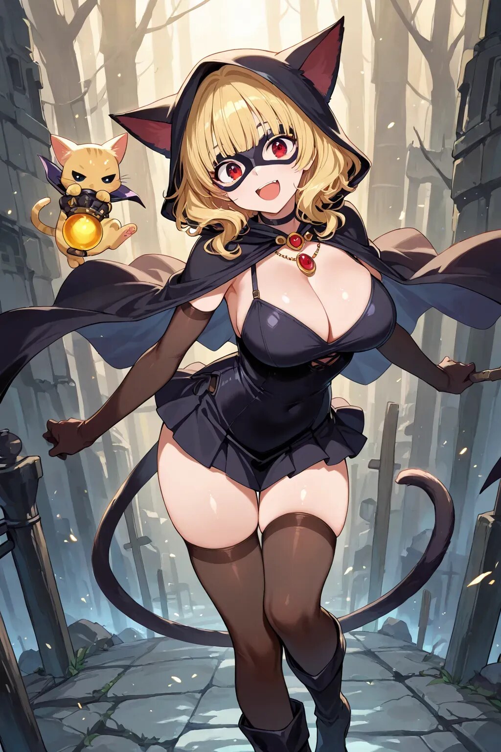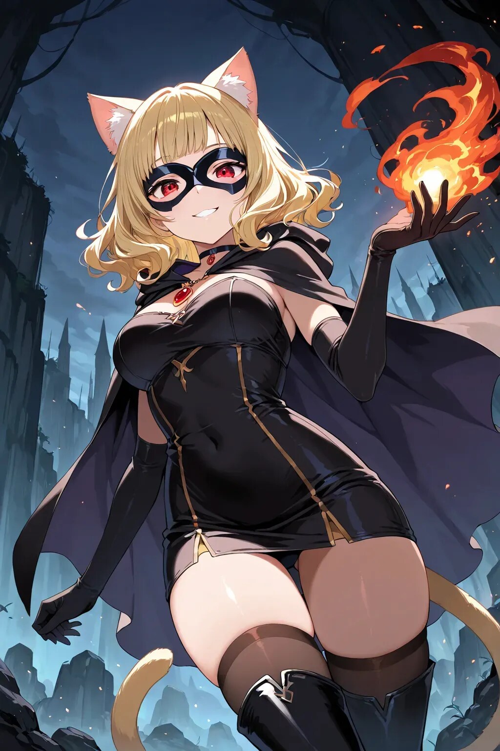 生まれ持っての金色の猫耳を、黒猫騎士団の闇の顔として活動する際には黒耳として偽装する(※)魔女カナビス。