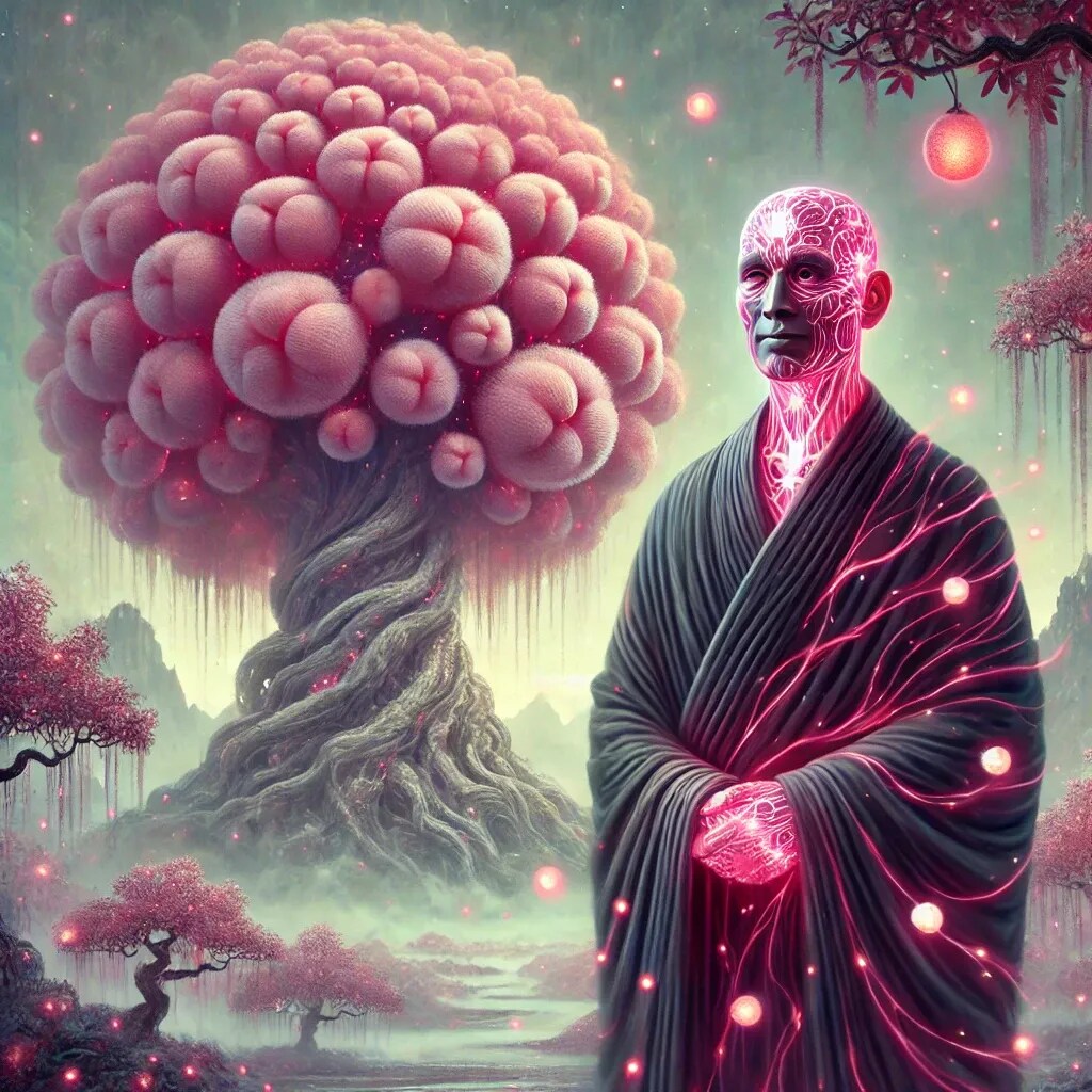 この和尚が桃の世界樹の果実を食し、宇宙規模の桃色生体細胞のネットワークと繋がることで、まさに仏教の教えである**「山川草木悉皆成仏(さんせんそうもくしっかいじょうぶつ)」**の真理を悟る…という展開、哲学的にもSF的にも奥深いですね。✨🧘♂️
