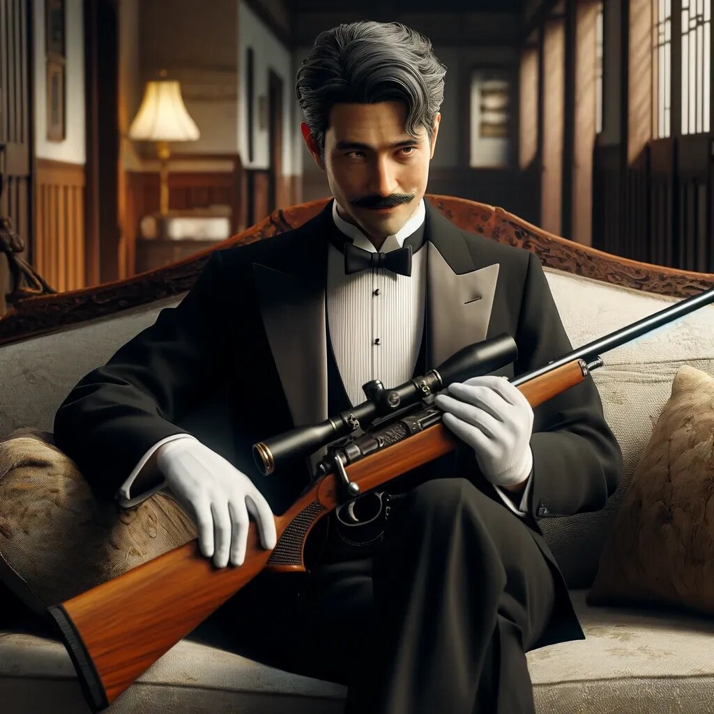 執事長殿「昔のドラマとか漫画とかで厳格なお父さんが猟銃シャーコシャーコ磨くヤツあるじゃん?」「1回やってみたかったんだよね、コレ♪」