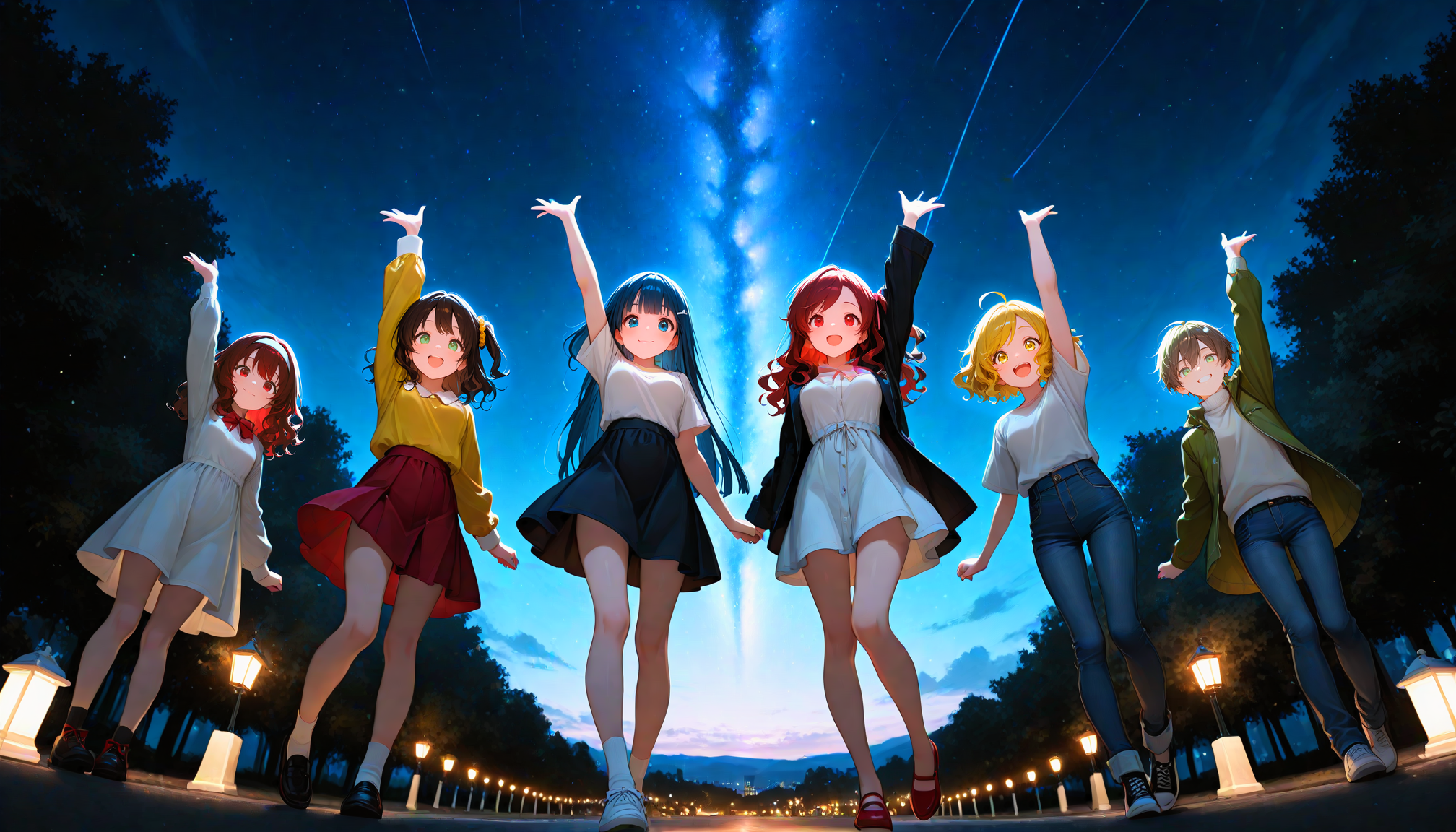 サンプルのプロンプトに 6 キャラも居たので、もうこれは全キャラ集合させるしかねーなと!