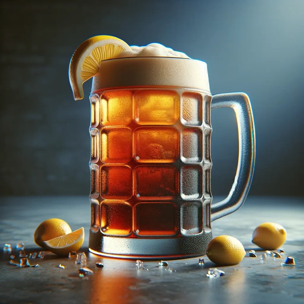 - 冷えたラガービールを注ぎ、軽くかき混ぜる。