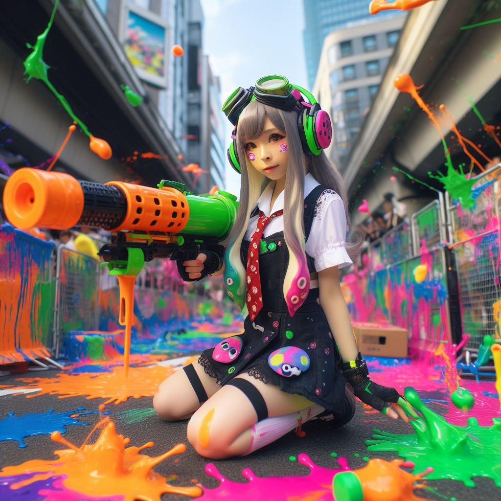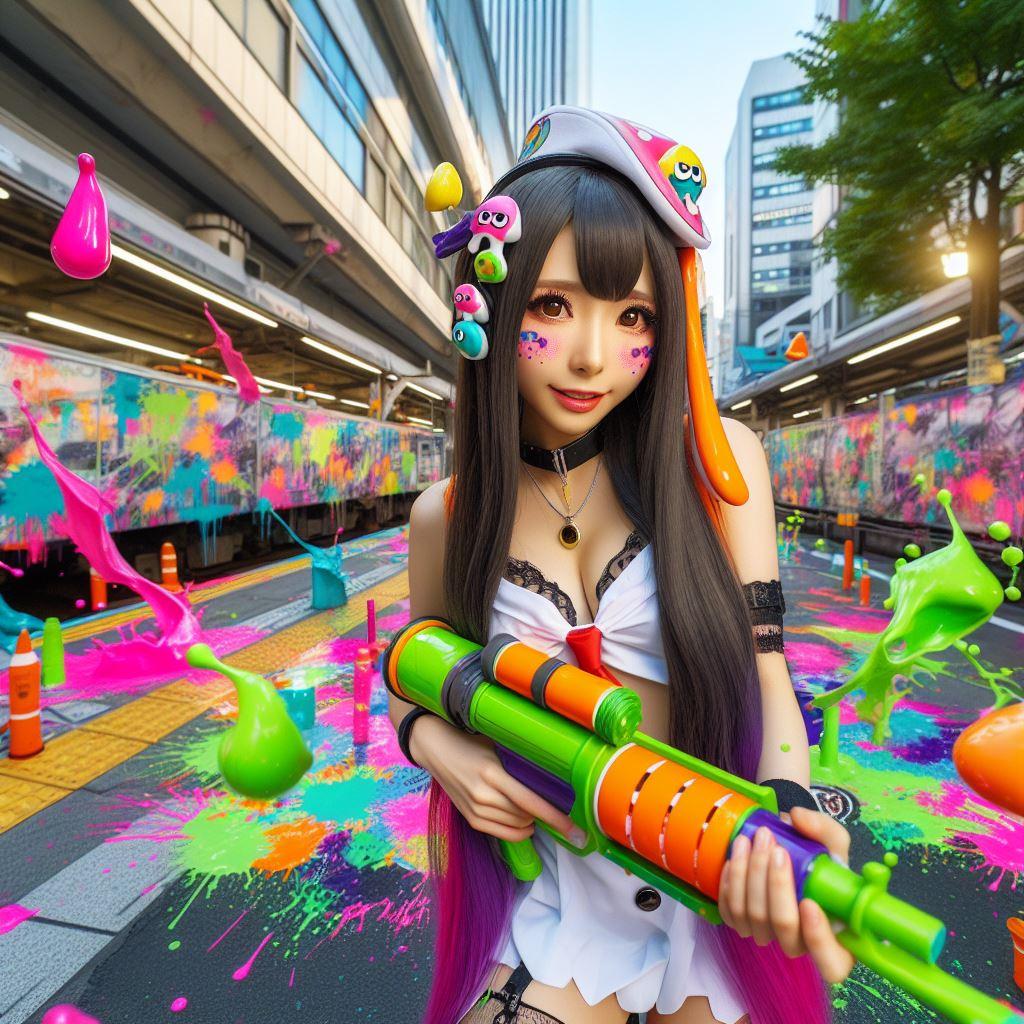 スプラ風というプロンプトでほとんどそのまんまの画像作れてる方がいたので試しにやってみたところ…完璧です。