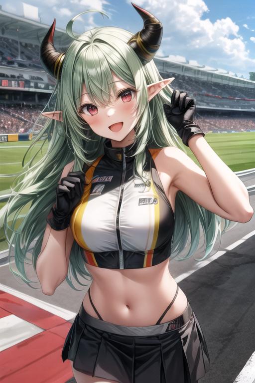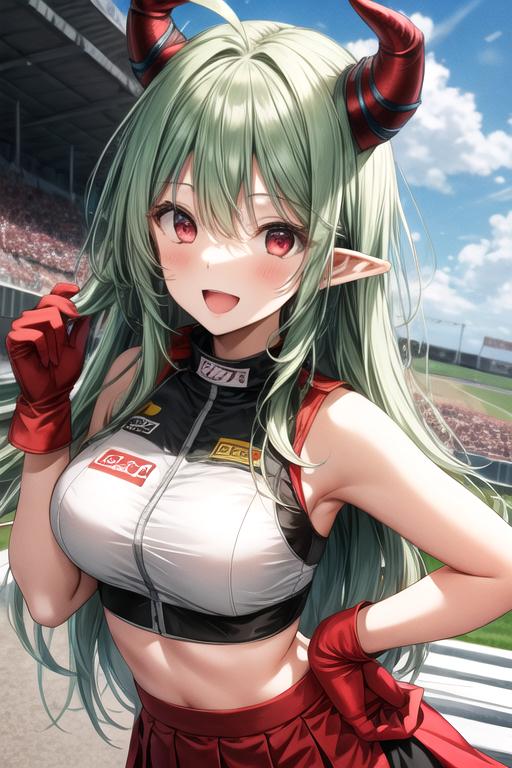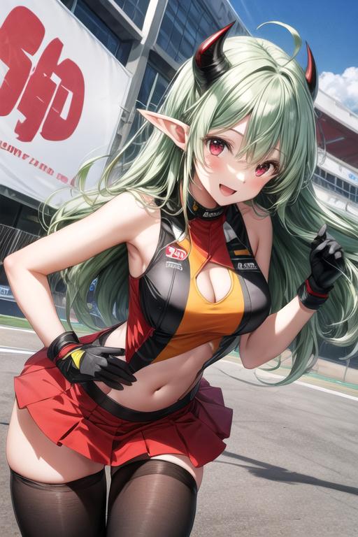 メルちゃんの中の人が新天地を求めるならば、同じくホロ溢れ組のでるさんが結成したU22だよな!?と思ったのでお揃いのレースクイーンにしてみました。前回でるさんを再現する時は元絵に近付ける事を優先した結果クオリティが犠牲になったところがあったため、改めて独自の絵柄でやってみたかったのもあります。
