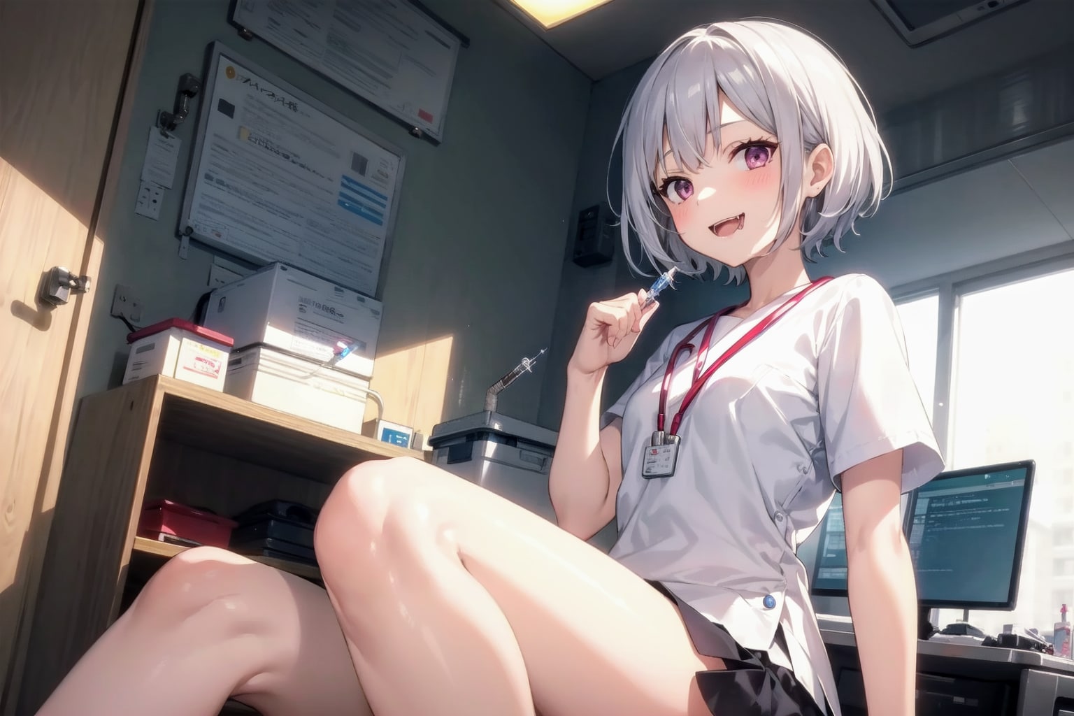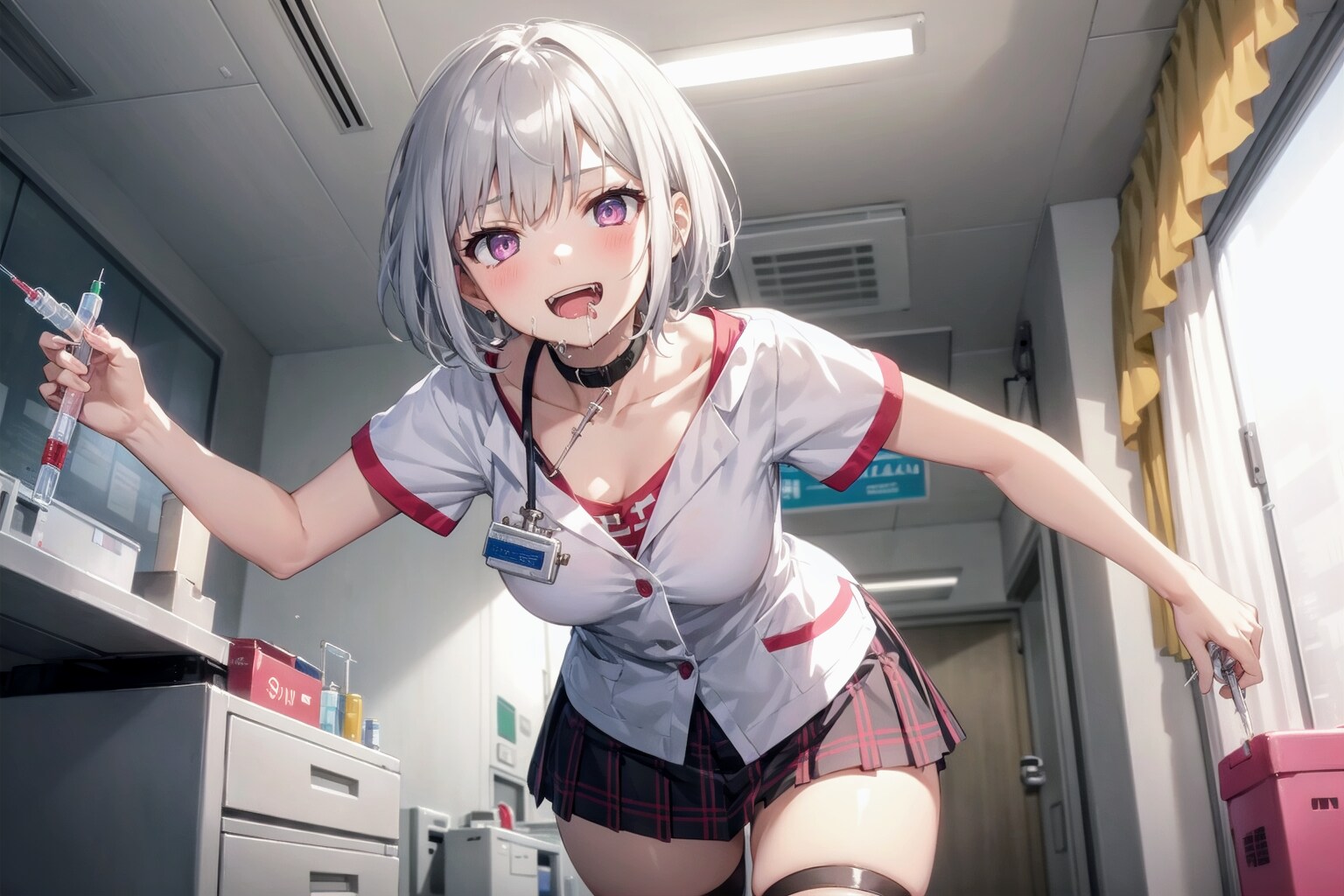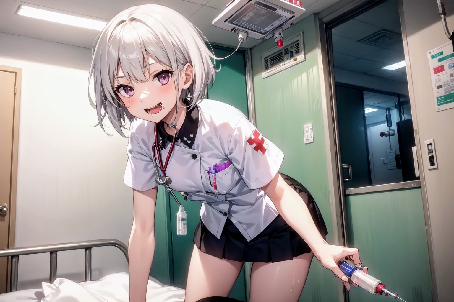 ぶっとい注射器、持ち歩く、ヤバ〜い女医さん!