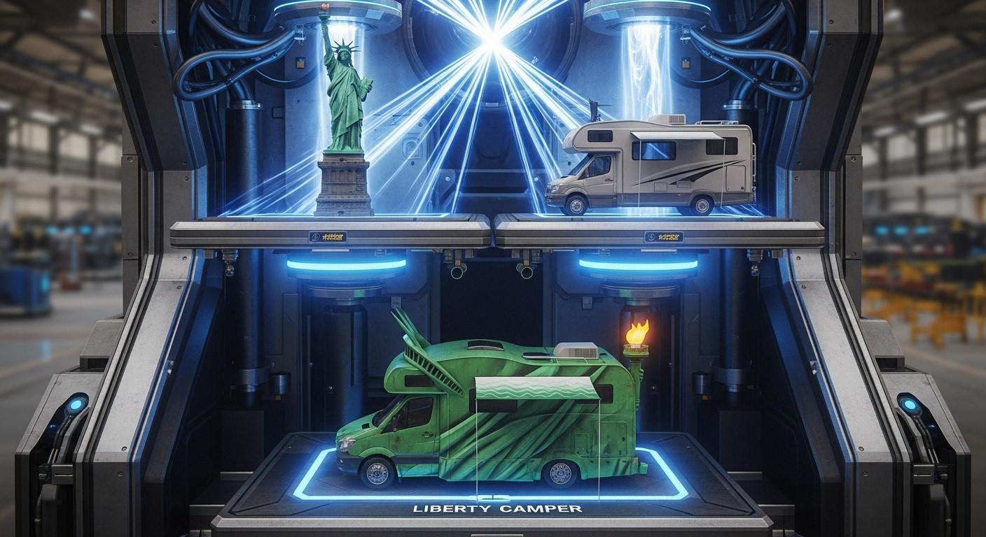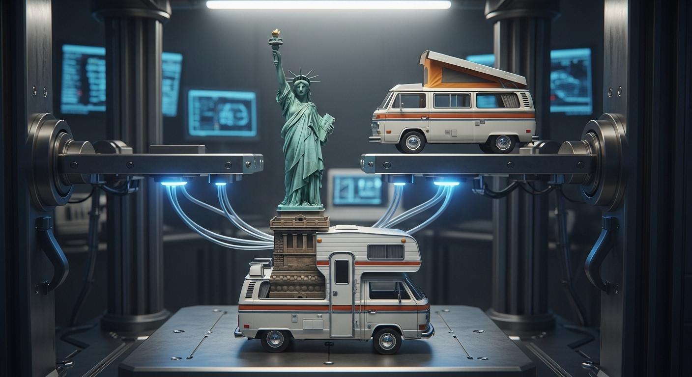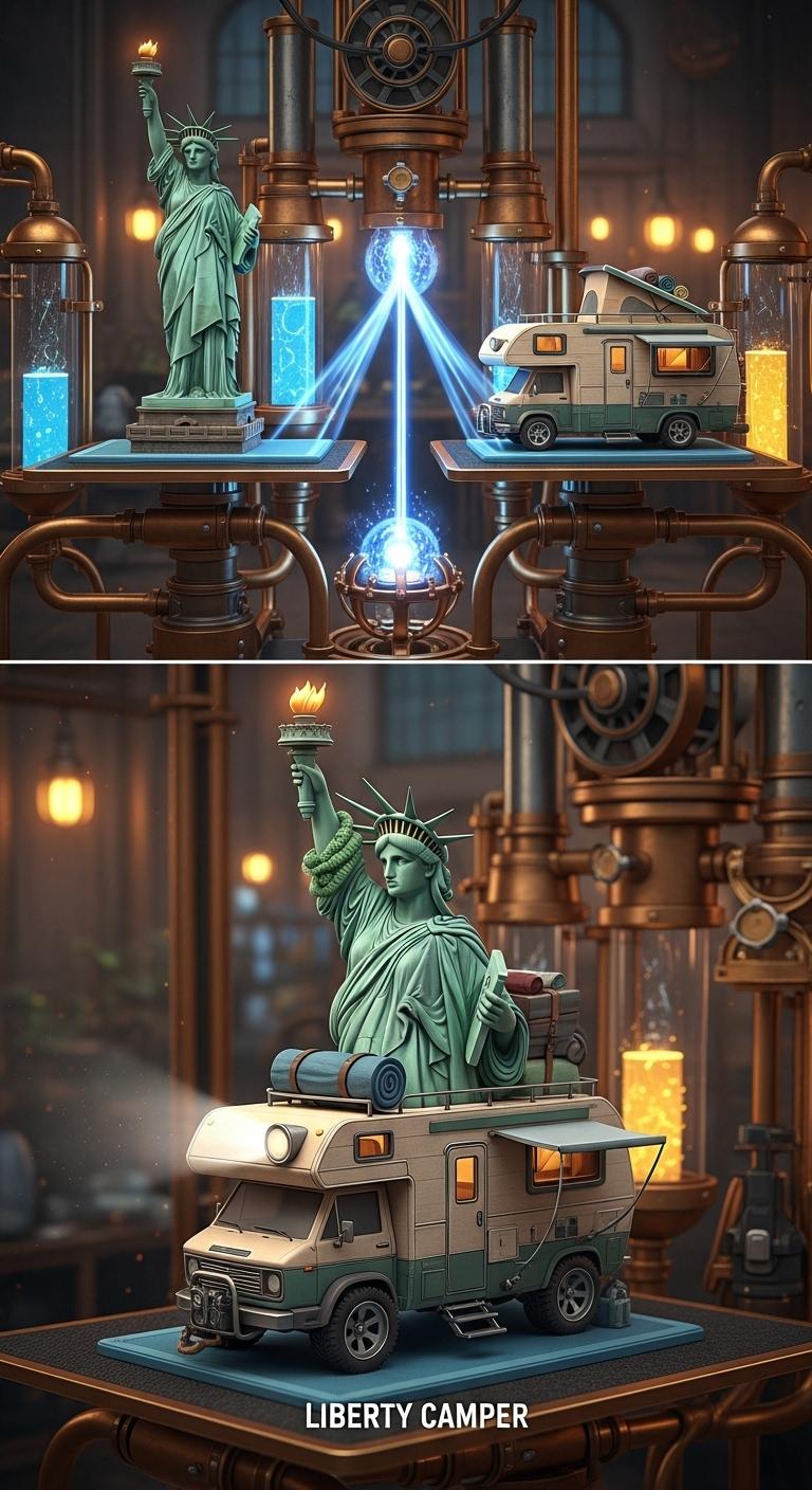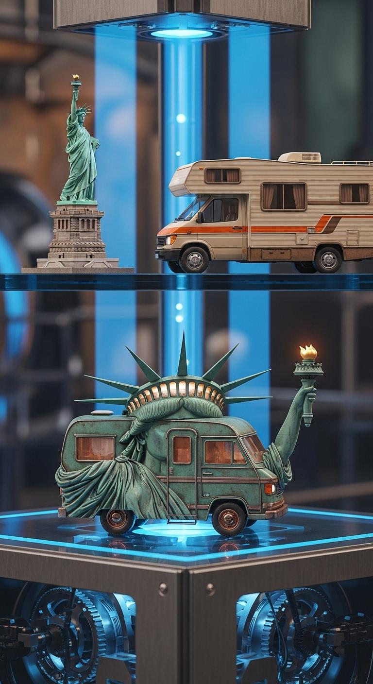 自由の女神+キャンピングカーで合成