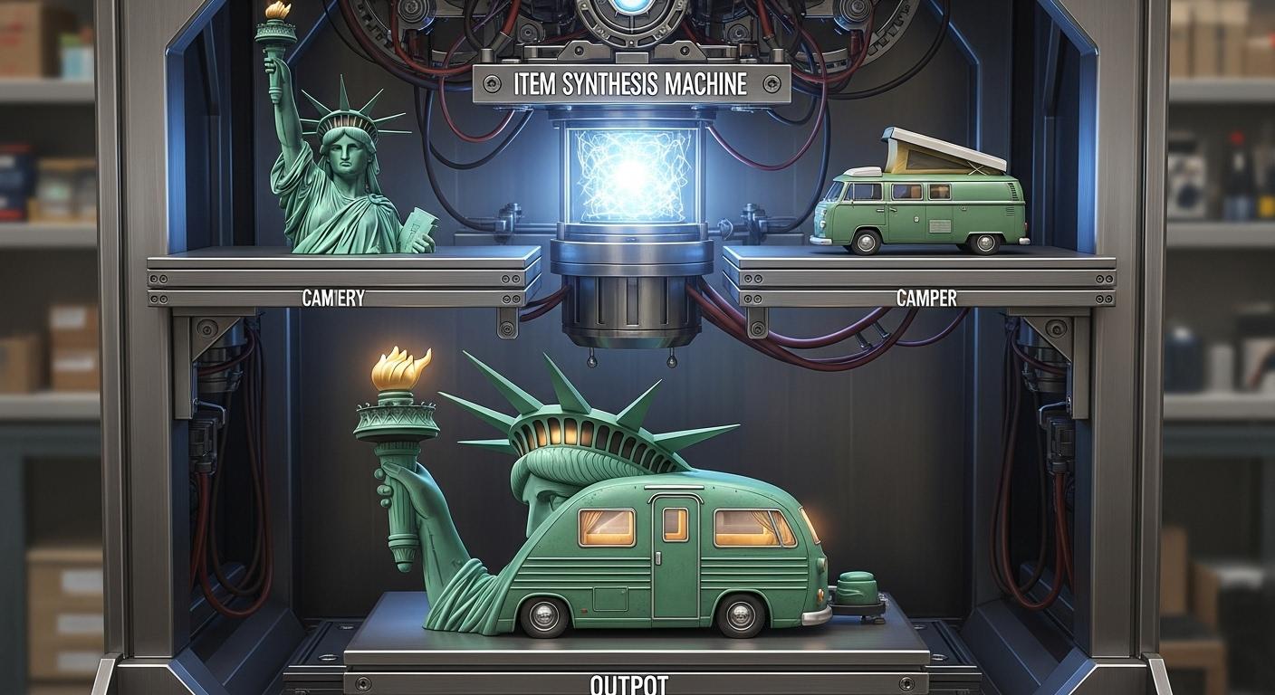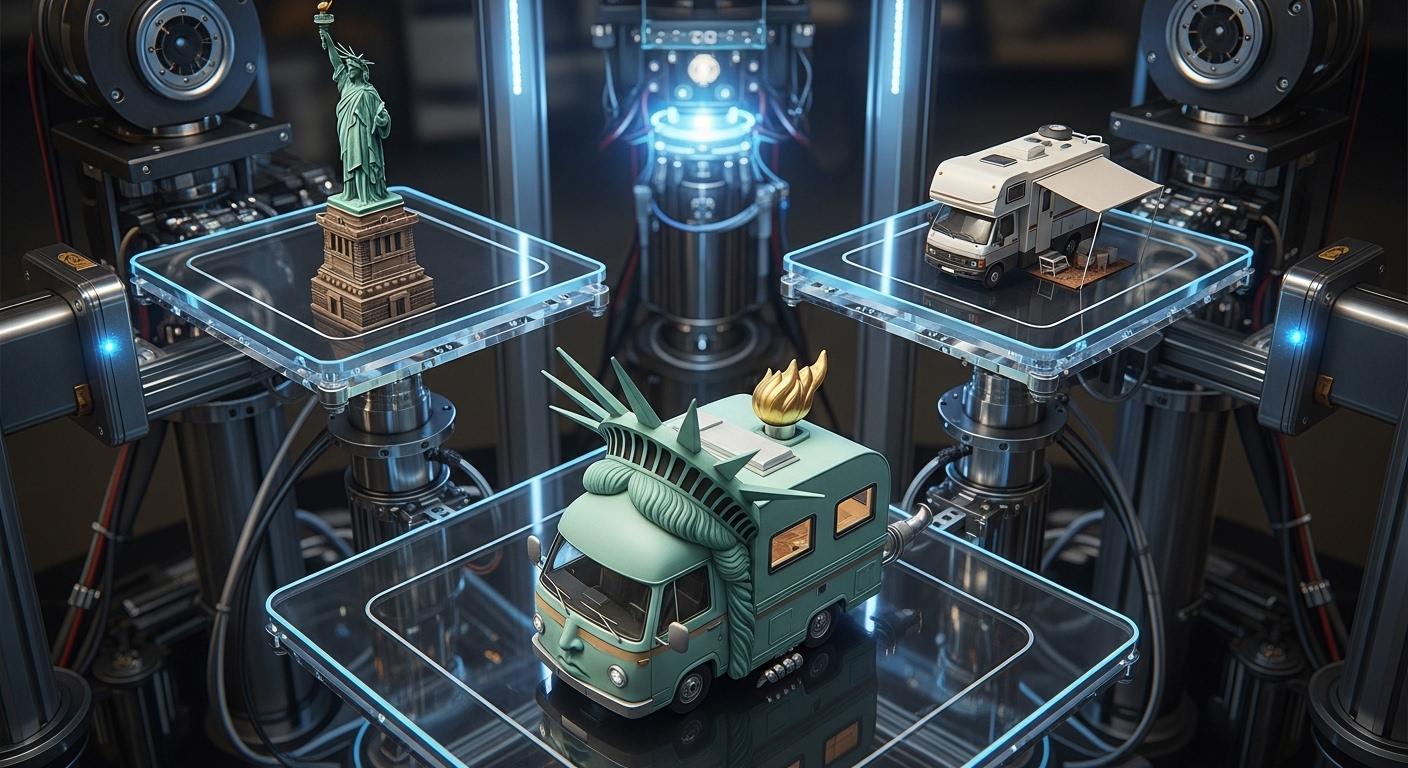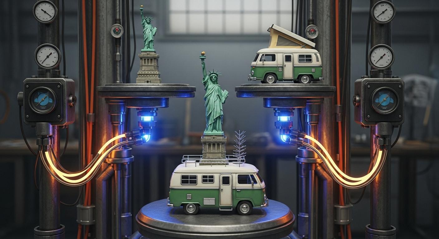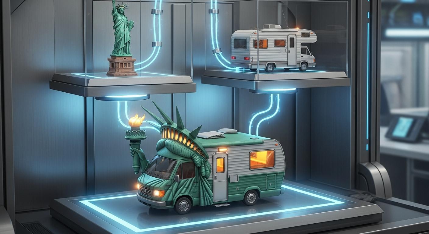 自由の女神+キャンピングカーで合成