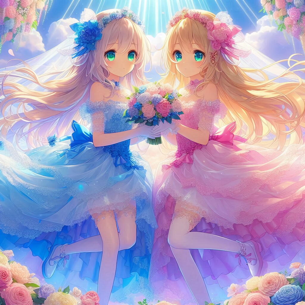 美しいお花畑から花束を抱えたウェディングドレス姿の少女がこっちへ近づいてくるぞ……
