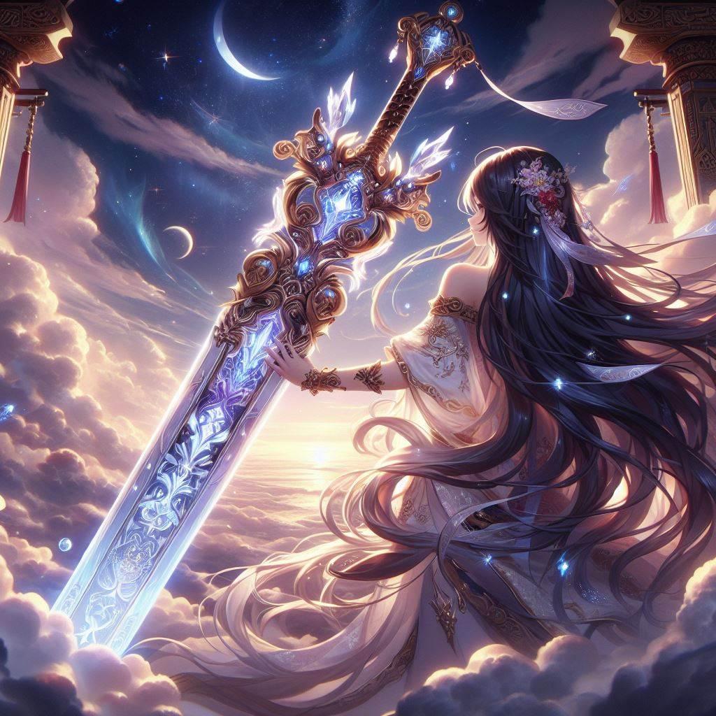 遥か昔、魔法に満ちた王国で、美しい姫君が暮らしていた。彼女の手には、透き通るようなクリスタルで作られた剣が輝いていた。その剣は、悪しき者たちから王国を守るために使われてきた伝説の武器であった。