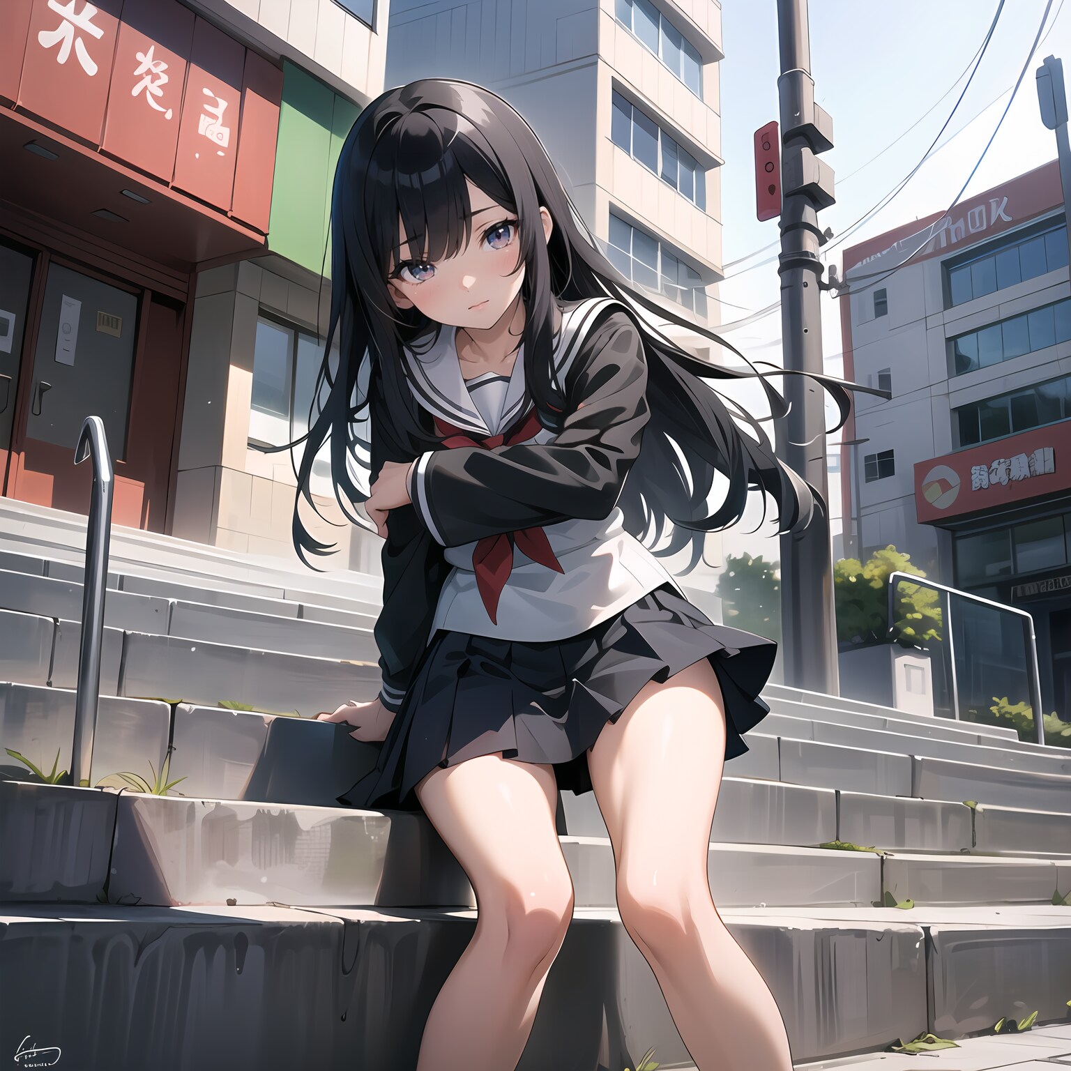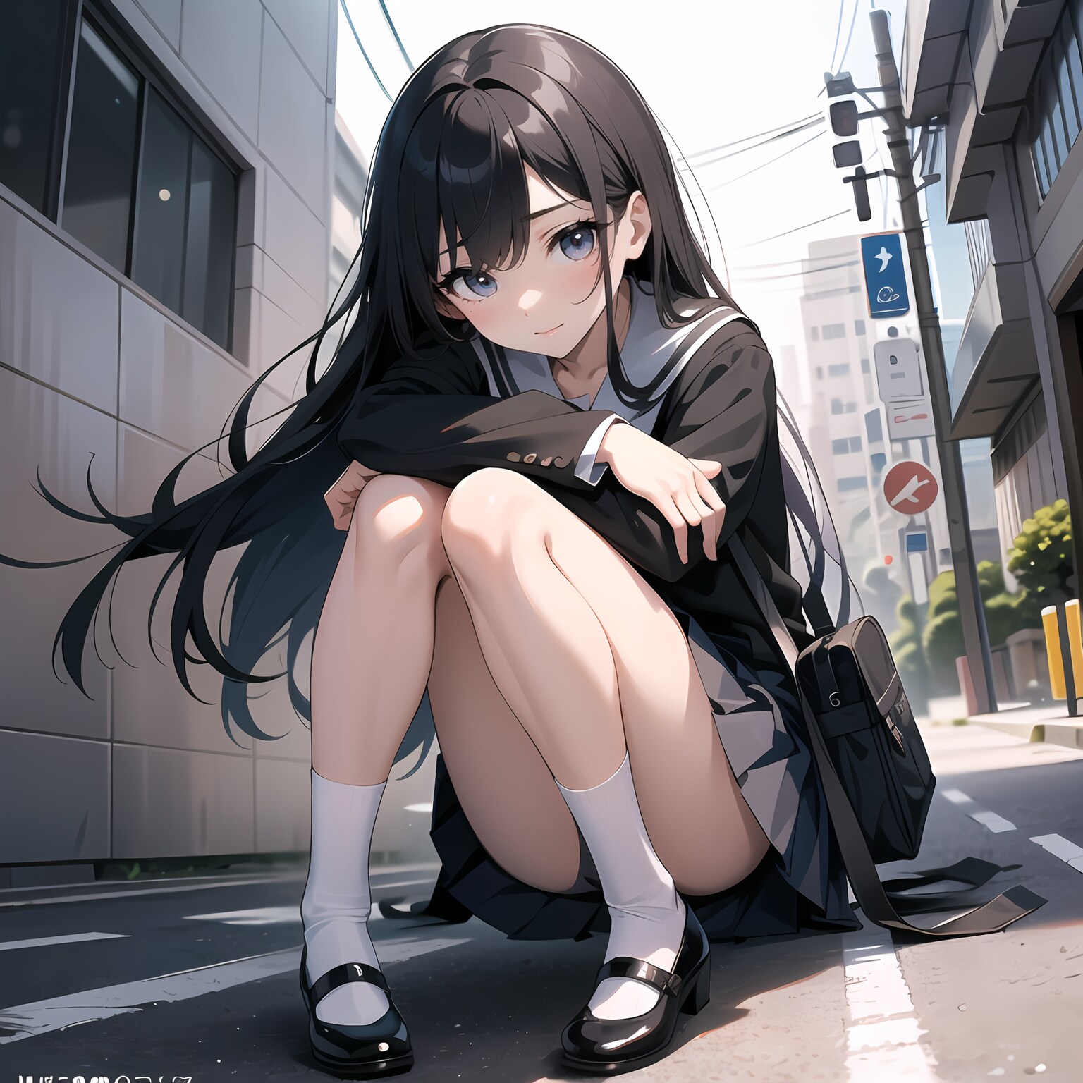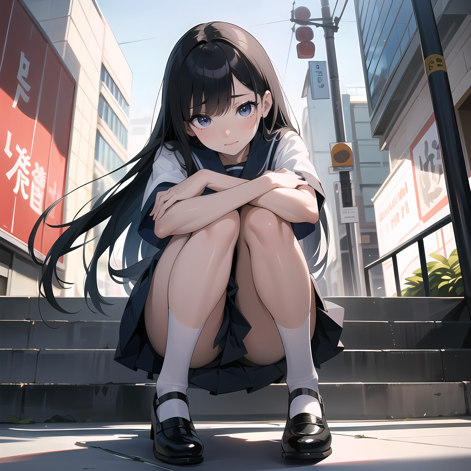 街の中でしゃがむ少女♪ 臆病ネコを見つけて♡(12枚)