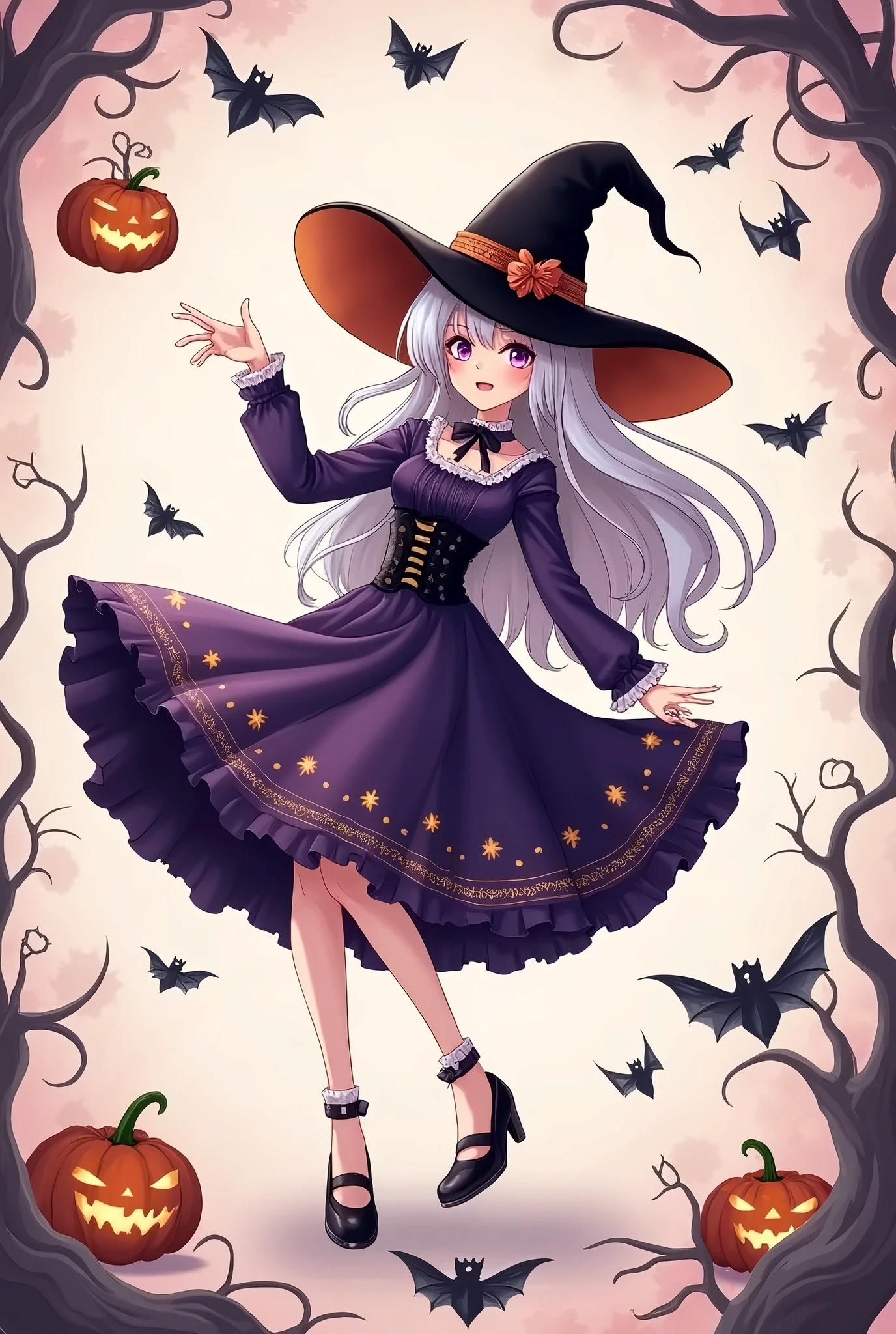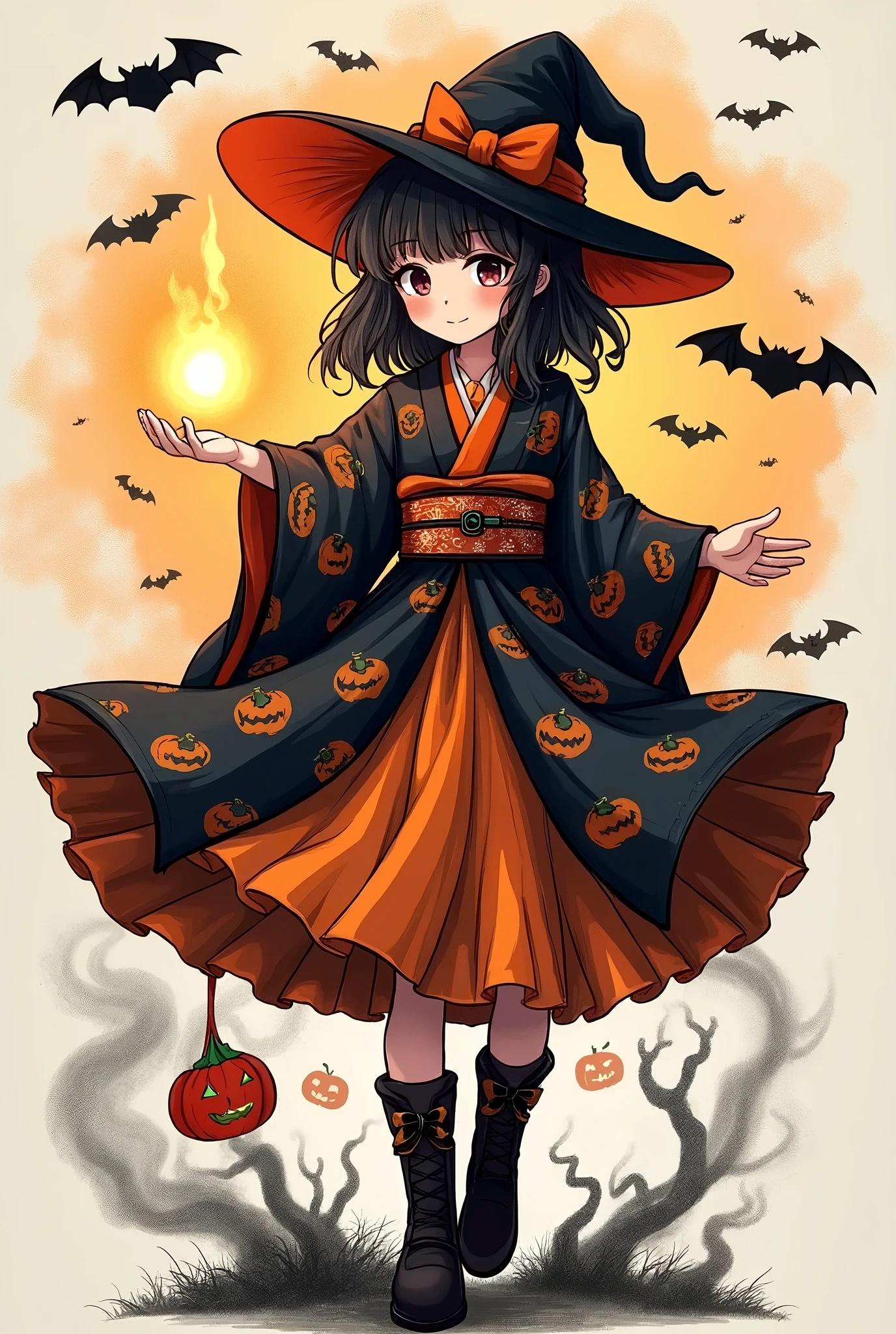 ①[着物]Halloween pattern witch kimono,