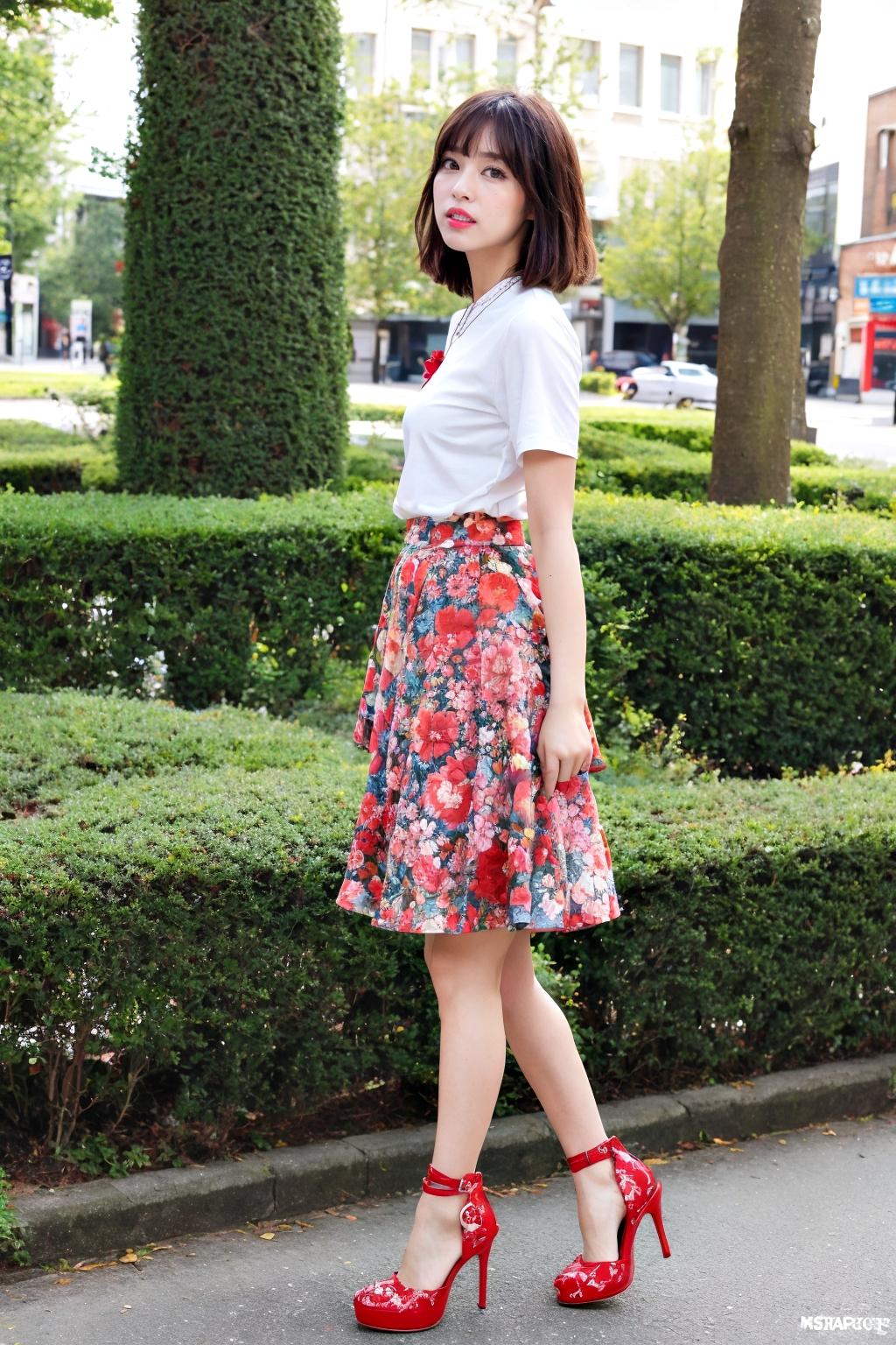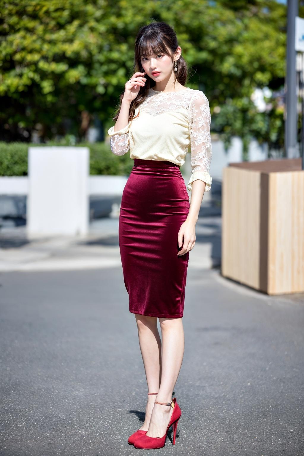 街中でお願いして撮影してもらった、美しいOLの休日コーデをご紹介します。ピンヒールが彼女の美しい脚は、都会の息吹を感じさせます。