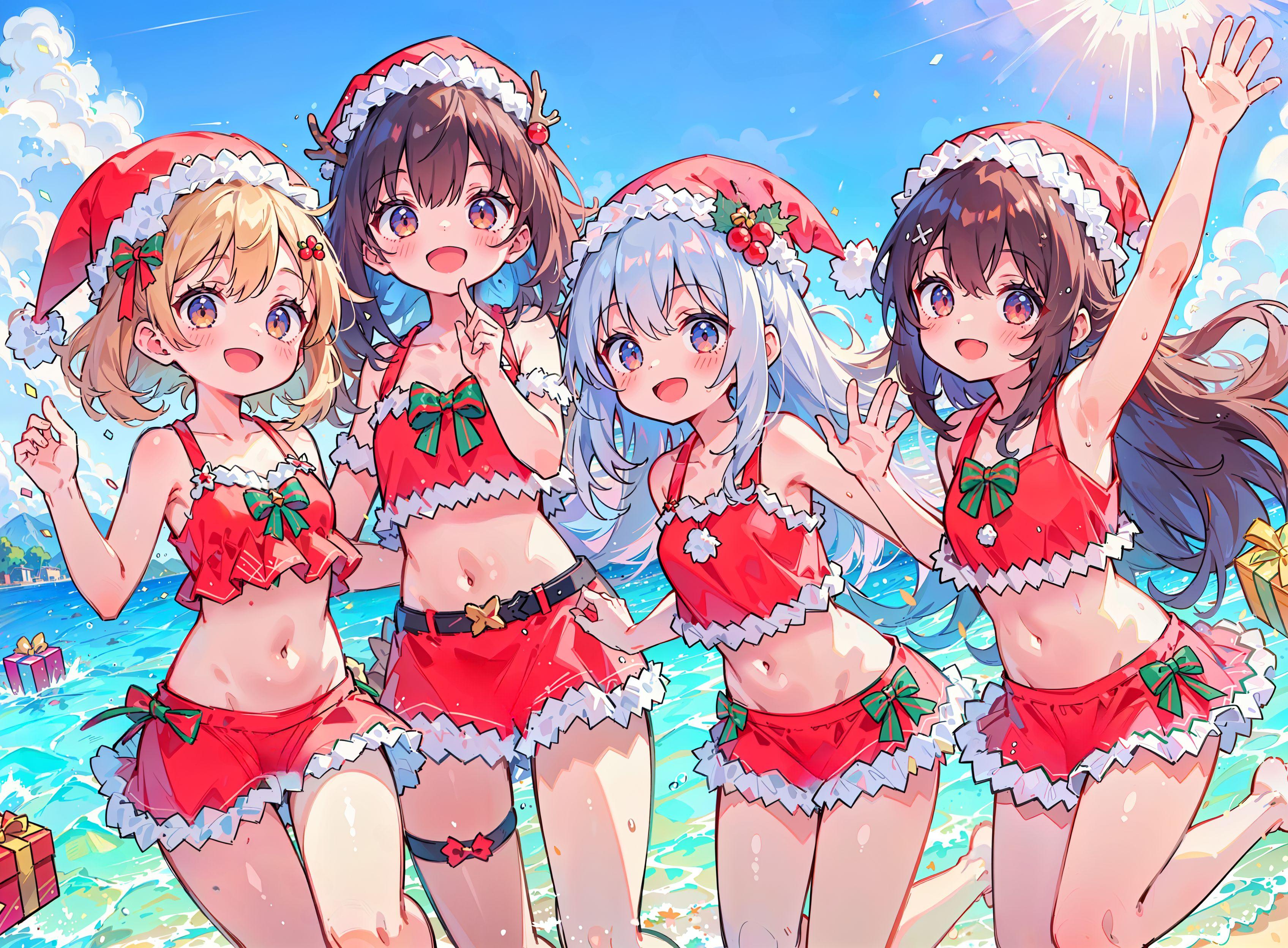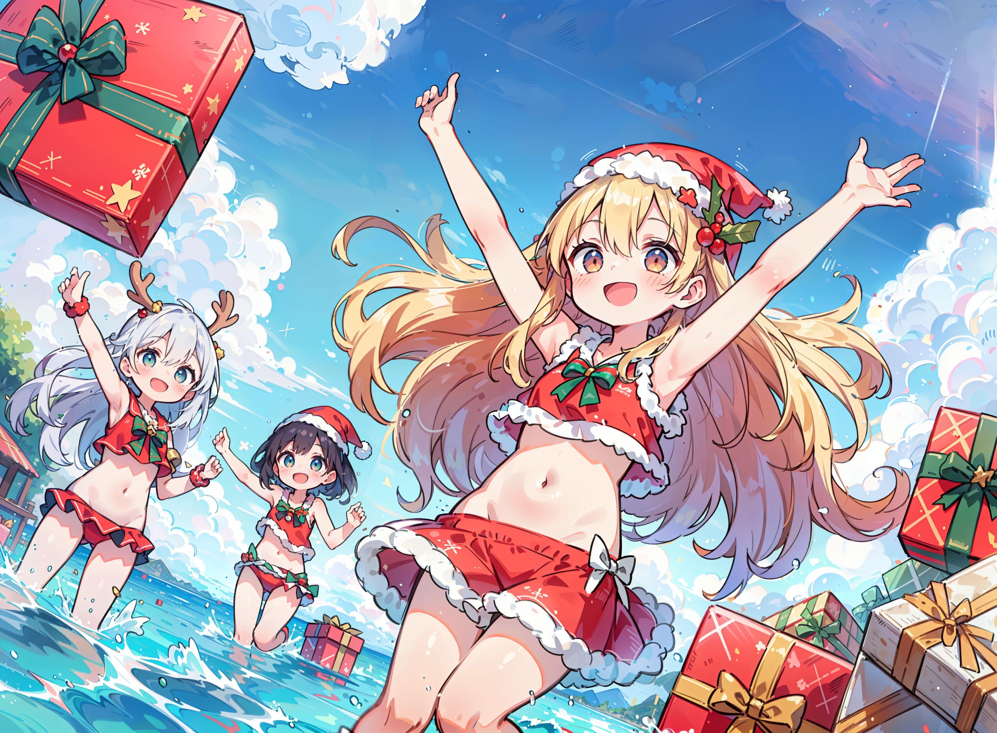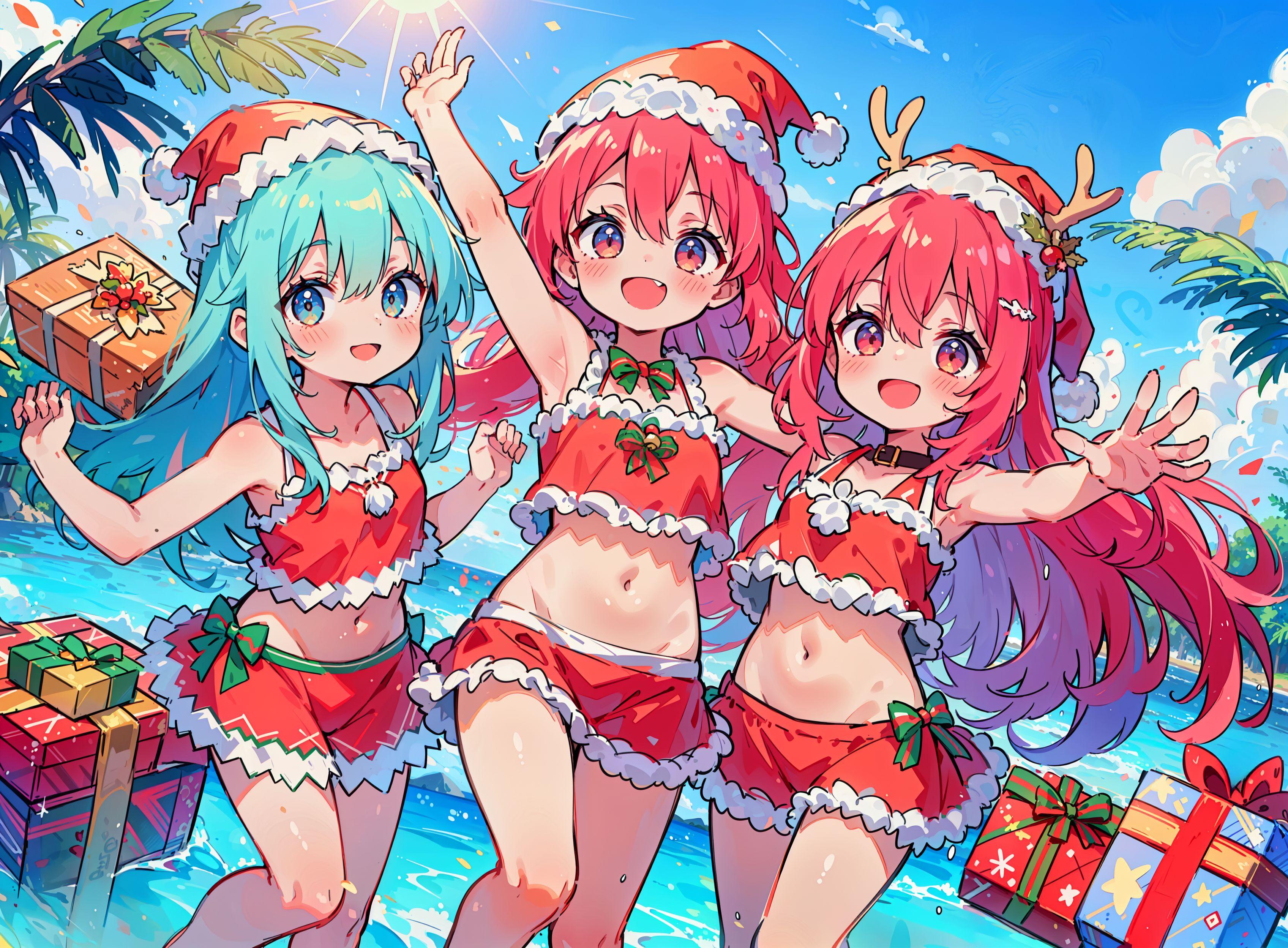 ビーチでサマークリスマスを楽しむ女の子たちをつくってみました。