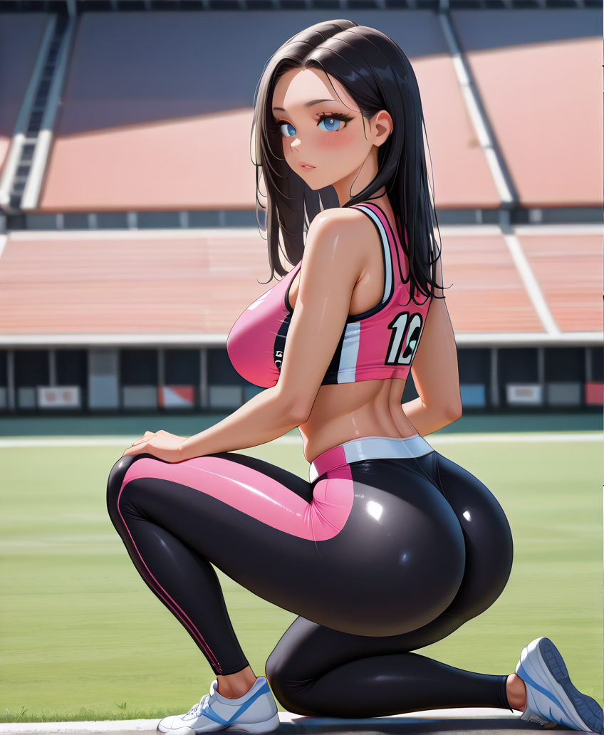 登場人物はギャルなのに陸上部という設定のうちの子「B子」です。金髪は一応「A子」です。体操着で参加。