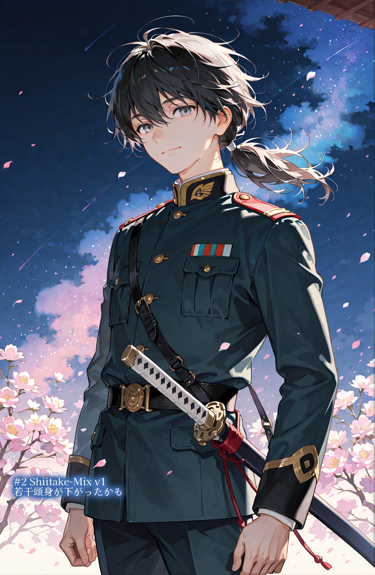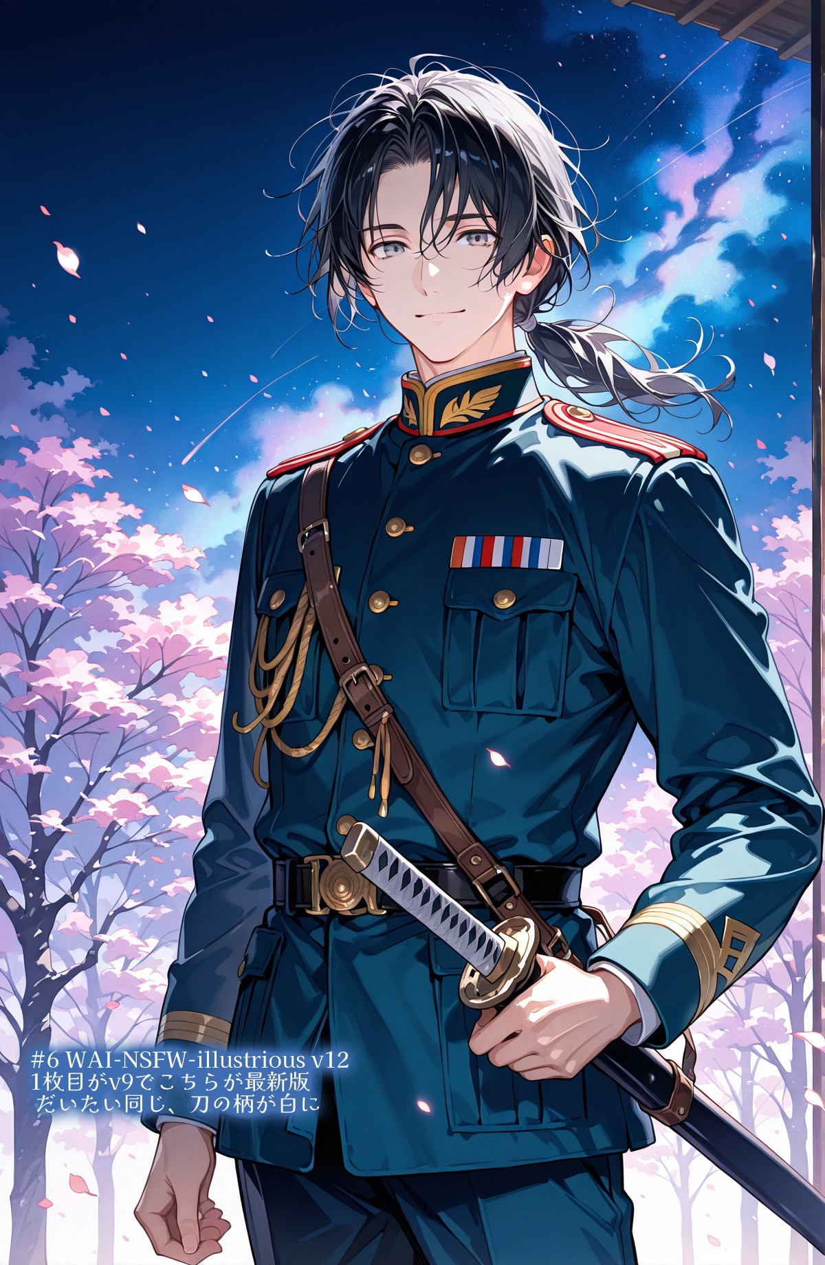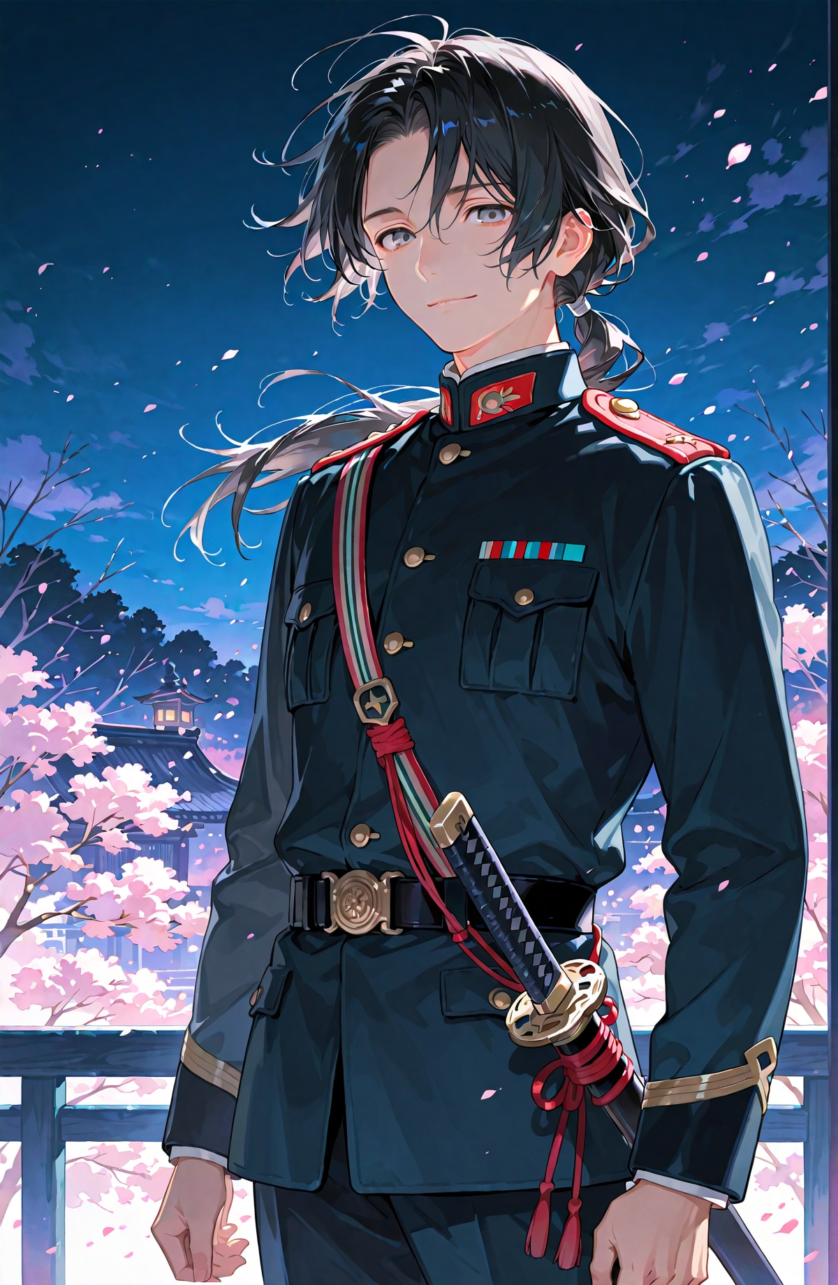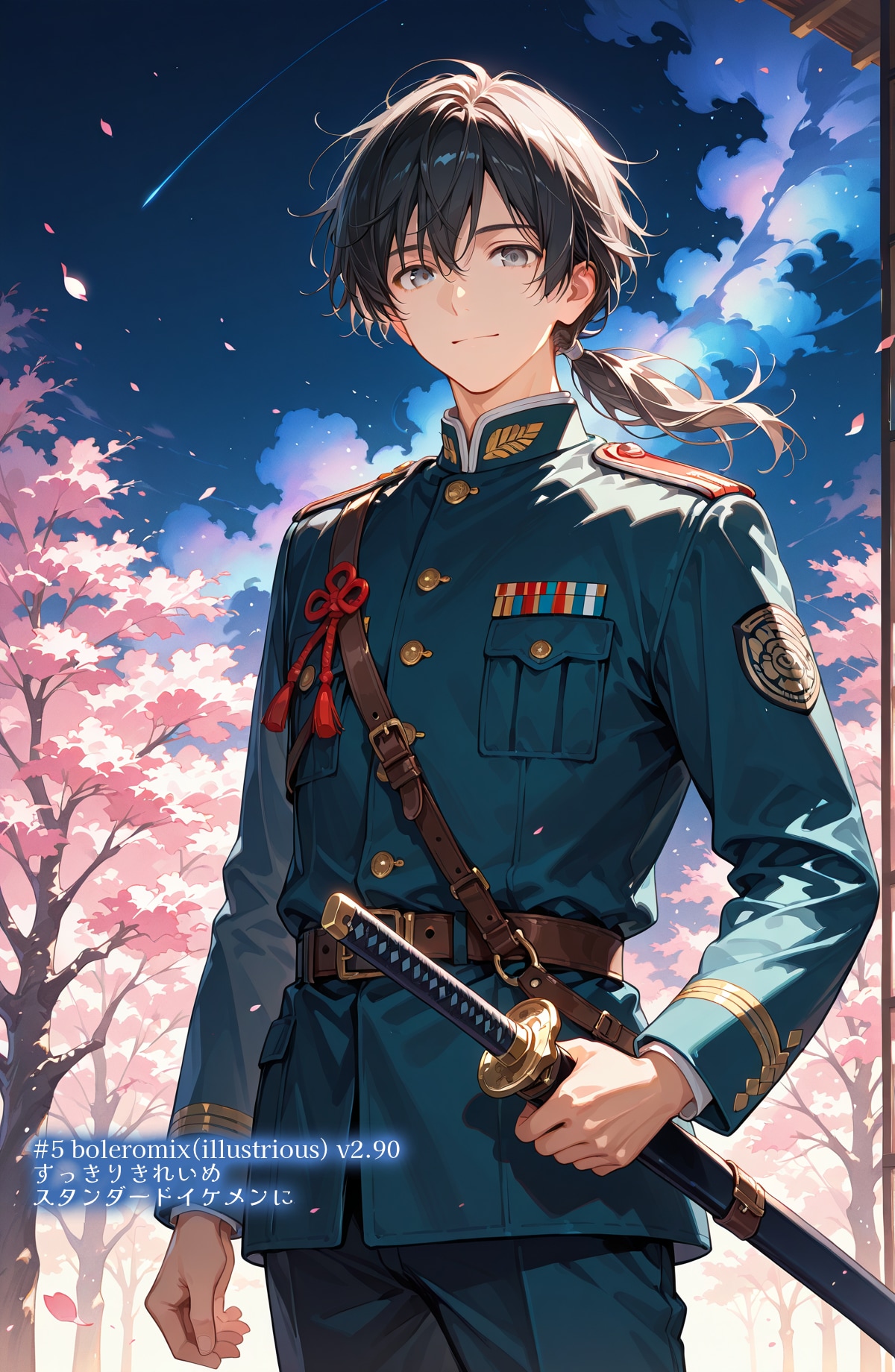 ・服装は military uniform, japanese, そこにおまじないレベルですが meiji era とか taishou era を加えてみました。軍服の色は指定していませんがそれっぽくなります。おまけの9枚目にありますが、背景を昼間にしたら白い軍服になることもありました。こうなるとかなり海軍とか艦○れ提督業を営んでる人っぽいです😺