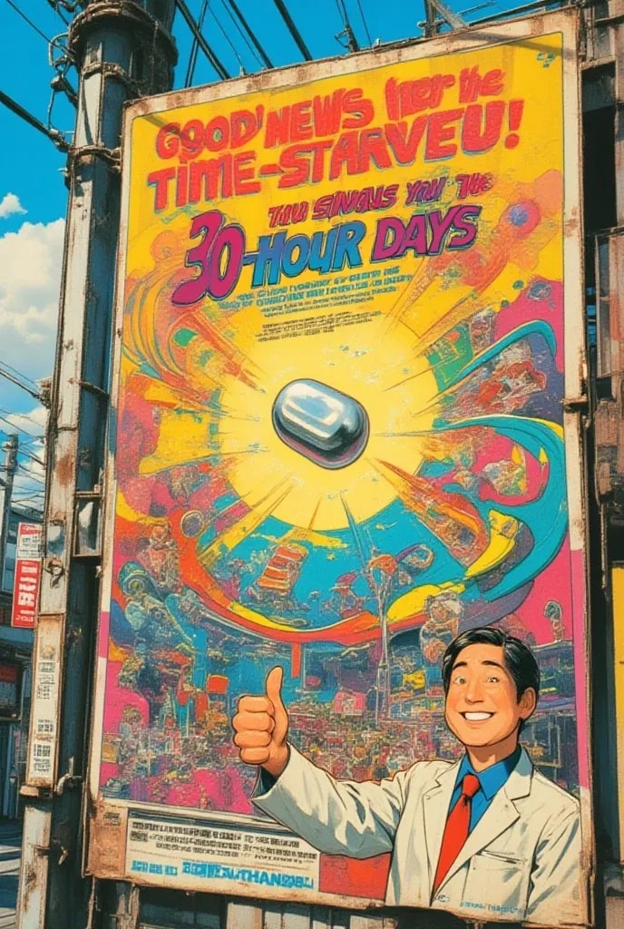 「最新の時間生理学に基づき開発された“クロノフォルテ”は、服用者の主観的時間感覚を拡張し、1日を最大30時間に感じさせる革新的な錠剤です。