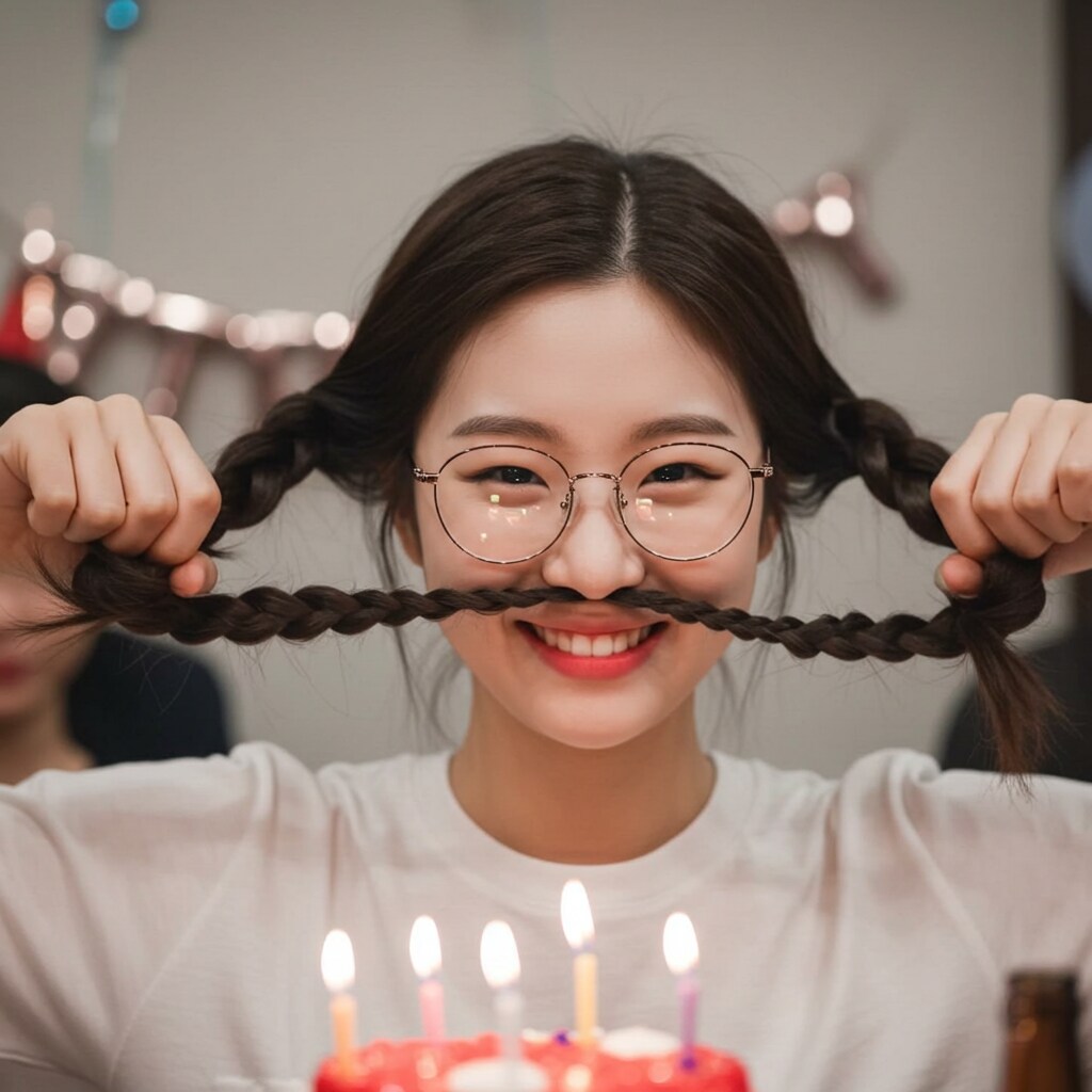 ほとんど上手くいかなかったので、途中からはそんな一発芸なんかしない方が絶対可愛い眼鏡三つ編みちゃんの画像でお送りします。