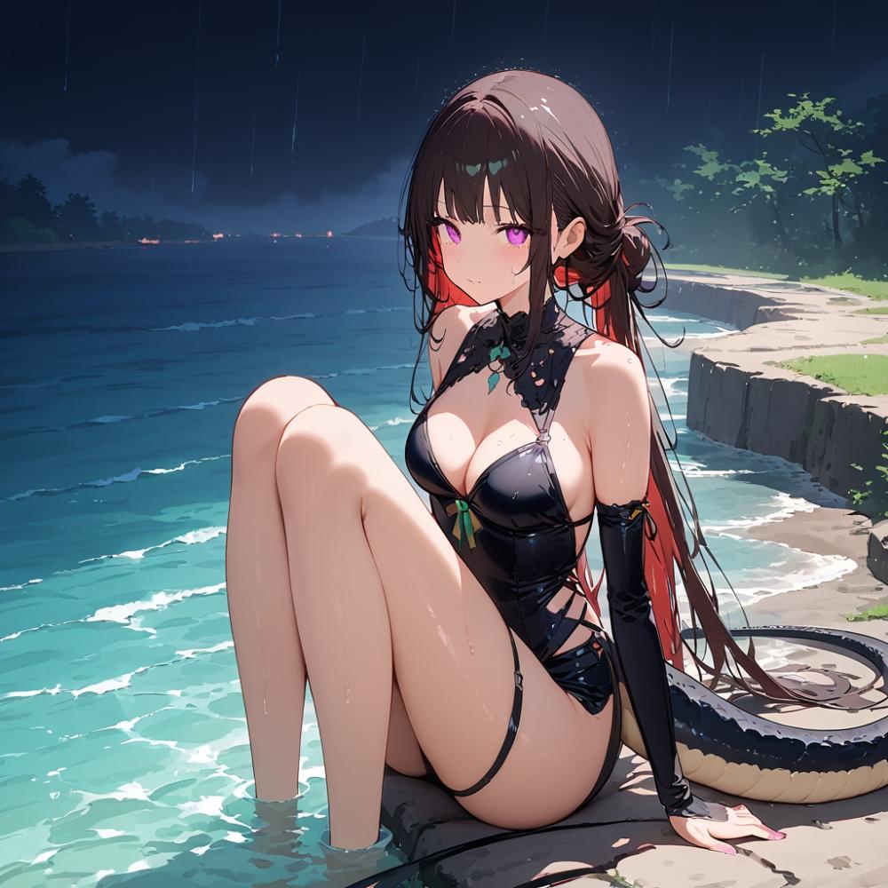 日本の水辺の妖怪。人間を喰う。髪が濡れたウミヘビの化身。江戸時代蛇体の女の妖怪画