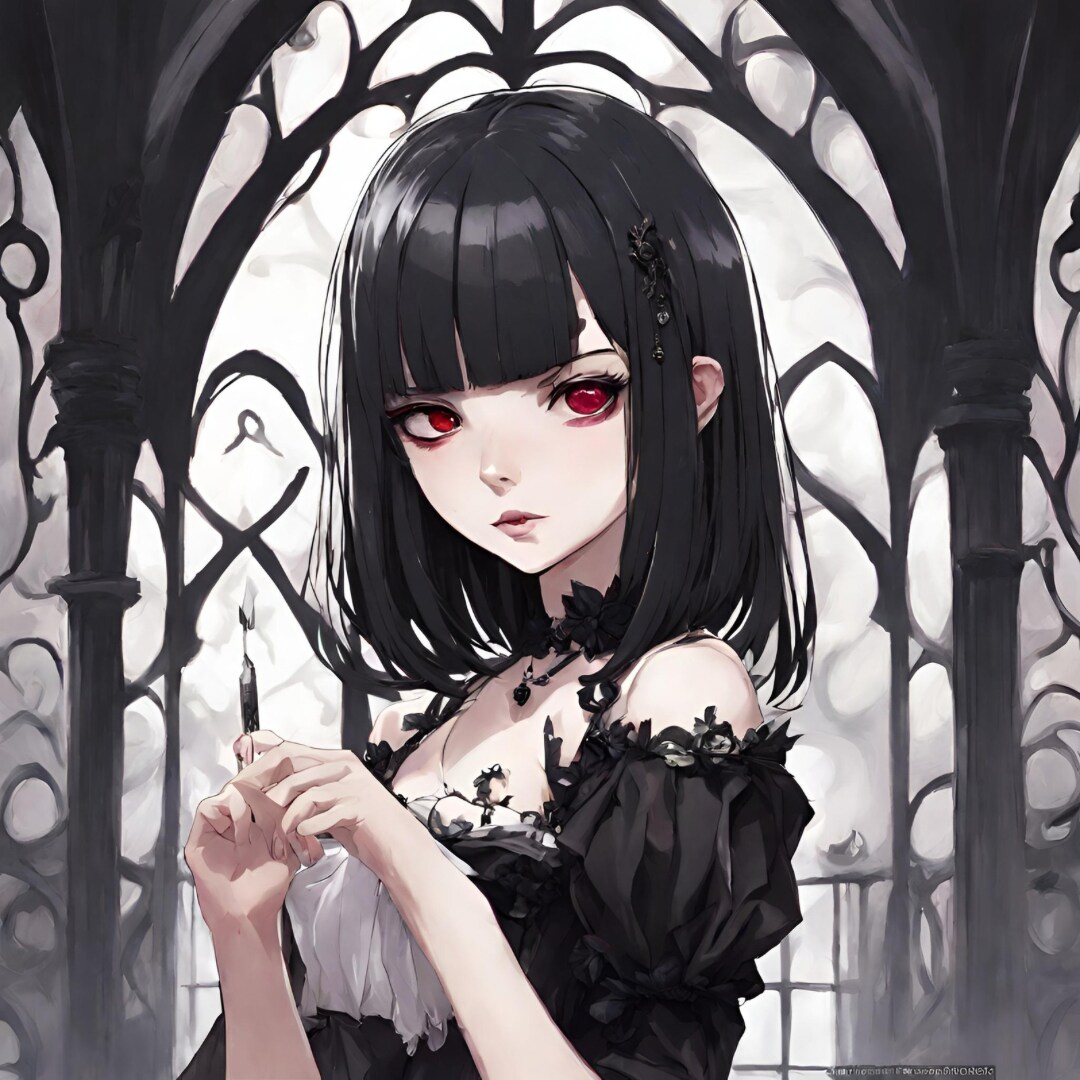 前髪ぱっつん黒髪ゴスロリドレスの少女