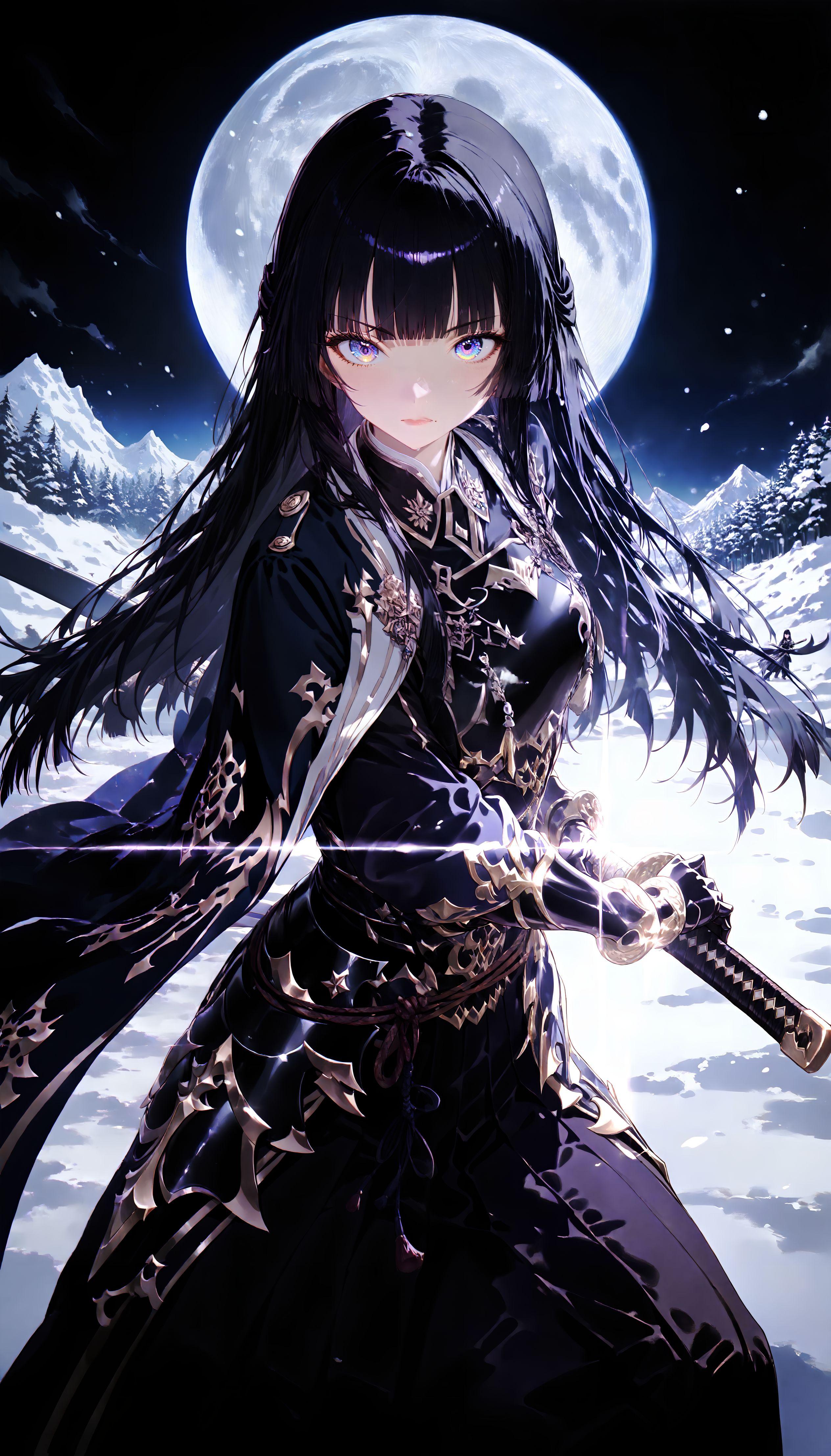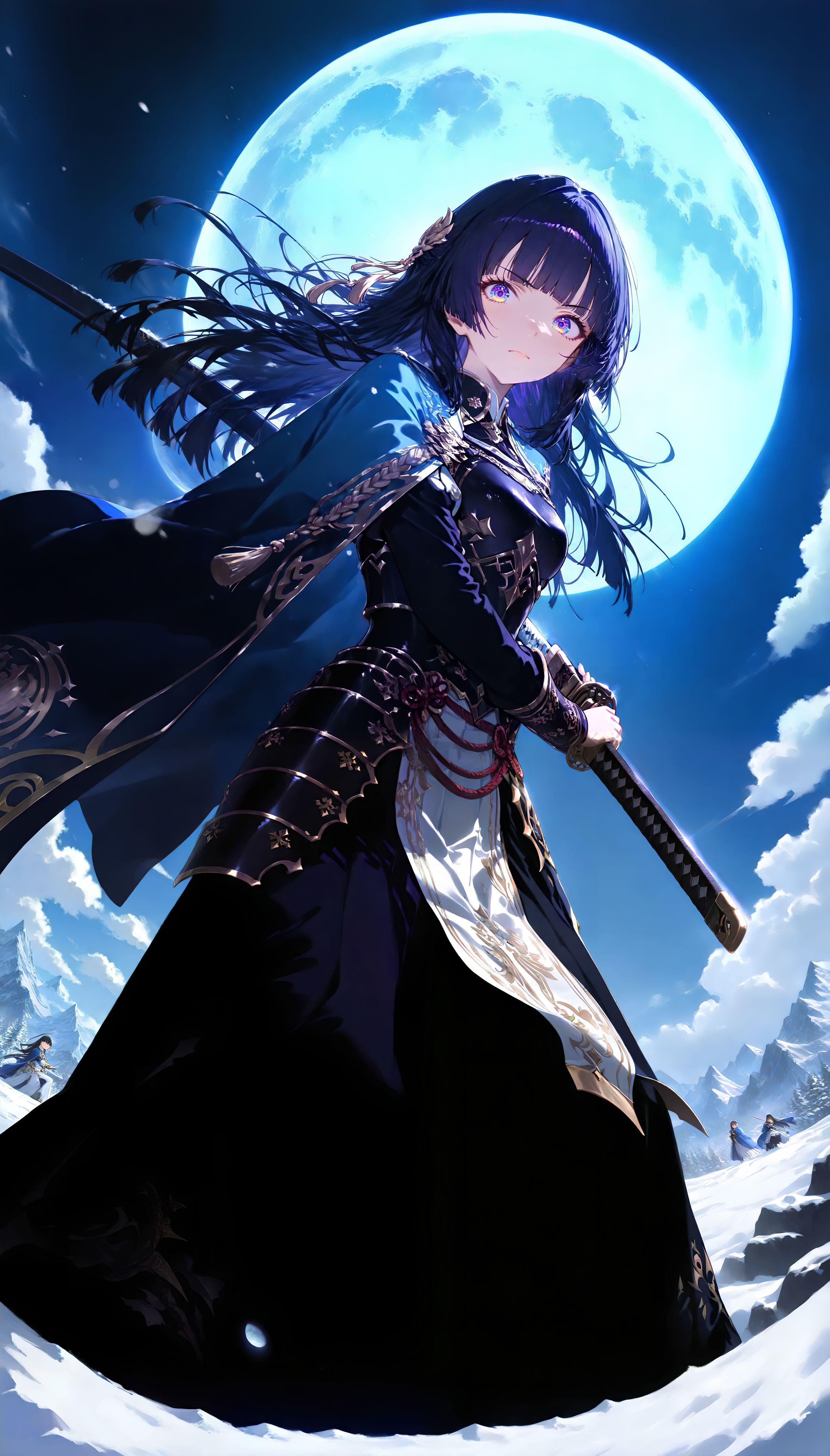 月の光を背にして居合の構えと鞘から出したときの刀身が光る部分カッコいいですね(о´∀`о)
