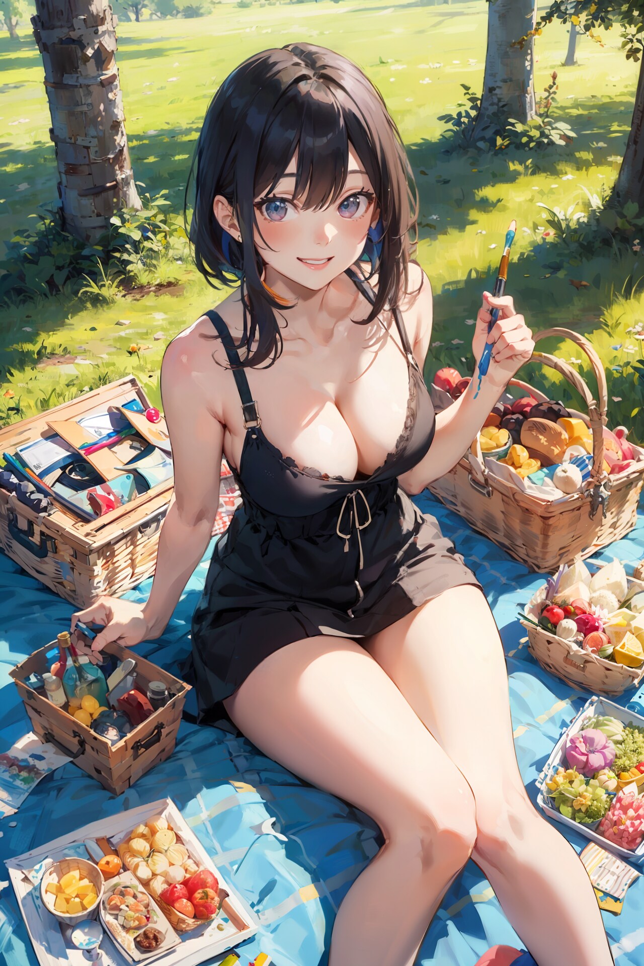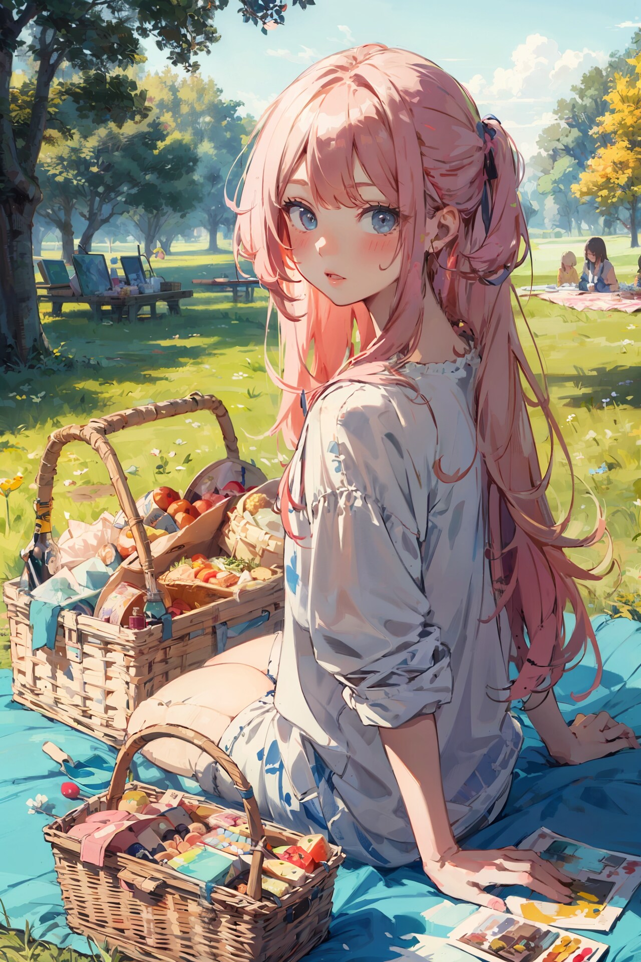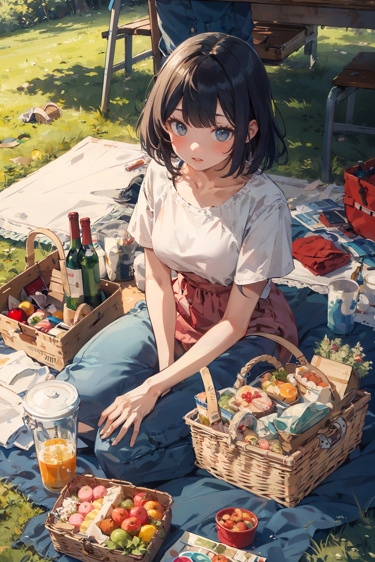 雨のニュースが多い昨今ですが、今日は暗いニュース吹き飛ばすようなピクニックをしている女の子のイラストです。