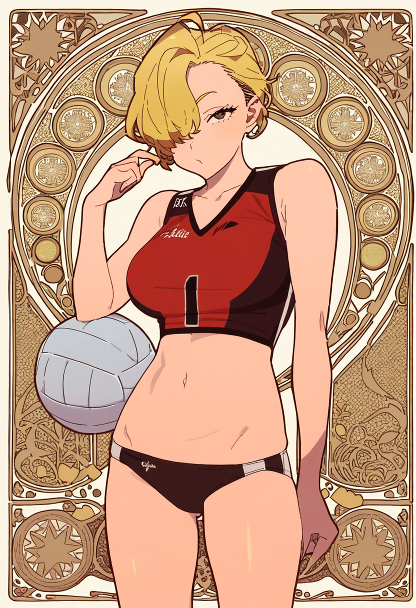 ミュシャが「部活を頑張る日本の女子高生を描いてみた」というコンセプトで作成してみました