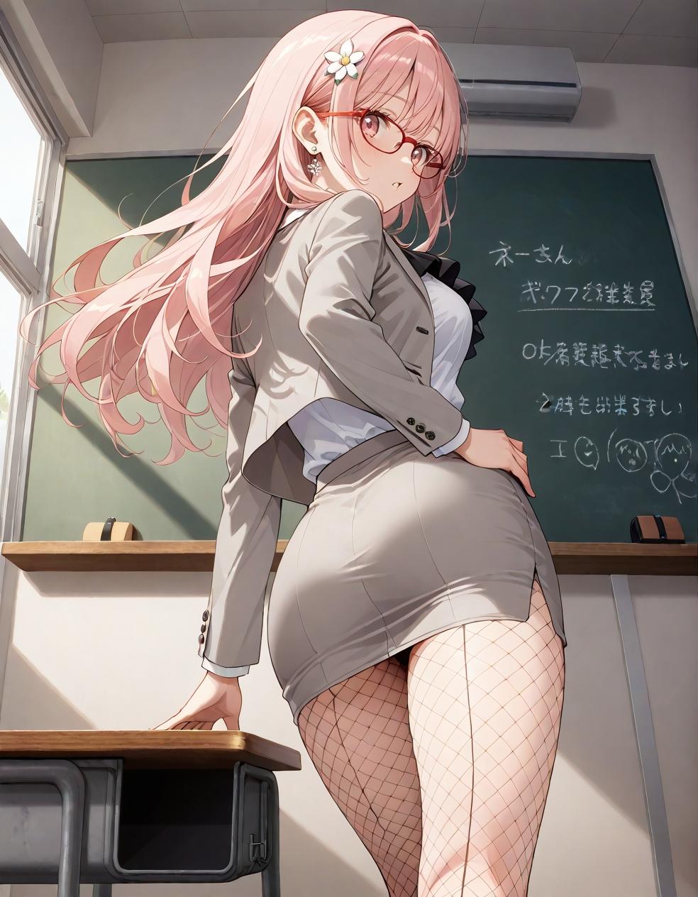 1枚目はバックシームを見せたかったので教師風、2枚目はフロントシーム。