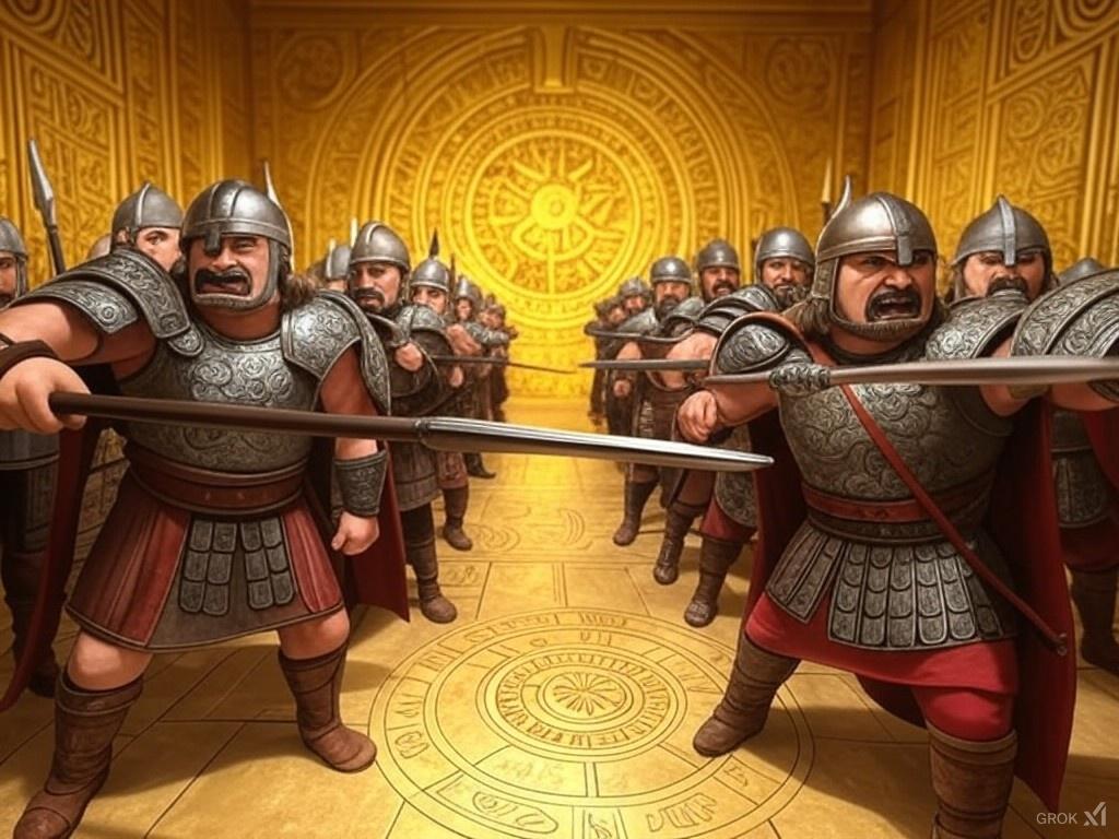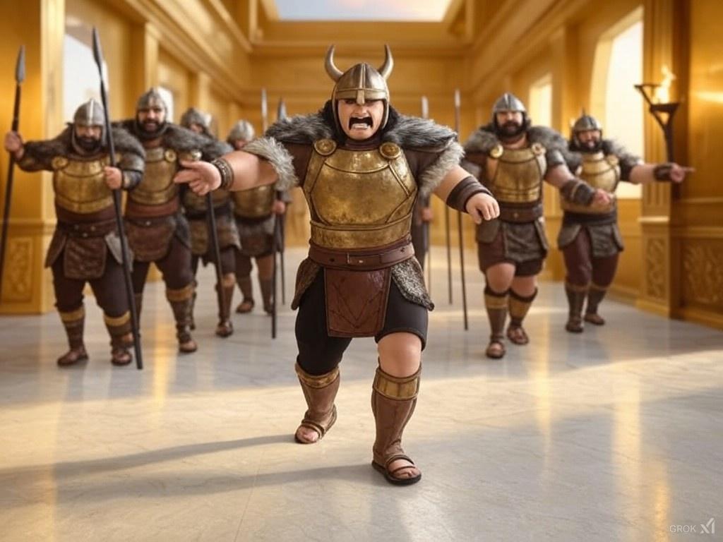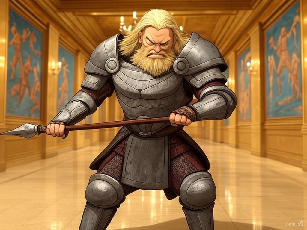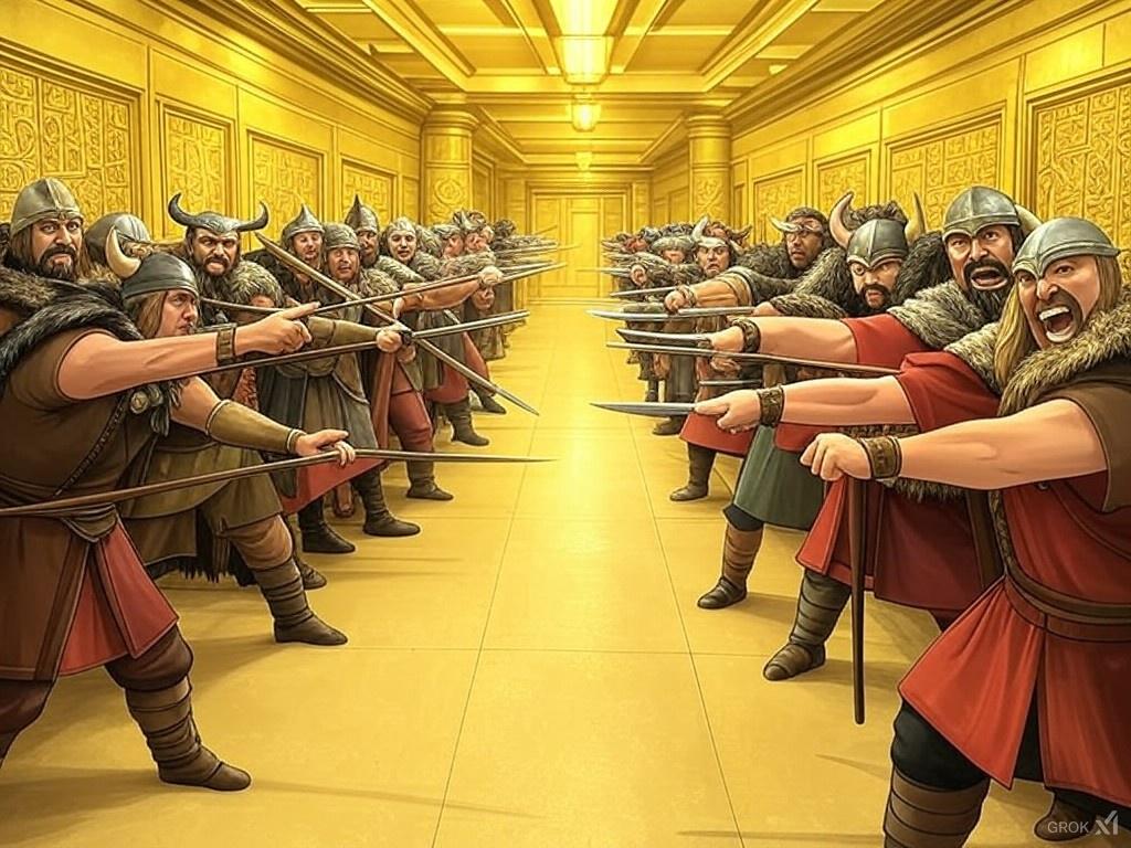 騒ぎを聞きつけた勇者、エインヘリャルたちがパパさんを取り囲んで