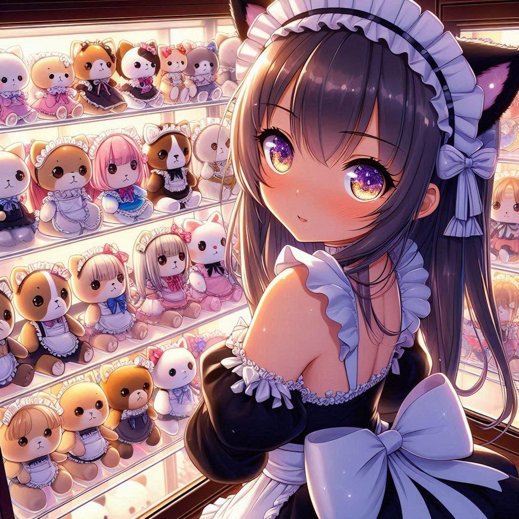 大量のぬいコレクションと猫耳眼鏡メイドさん(*´ω`*)メガネメガネ