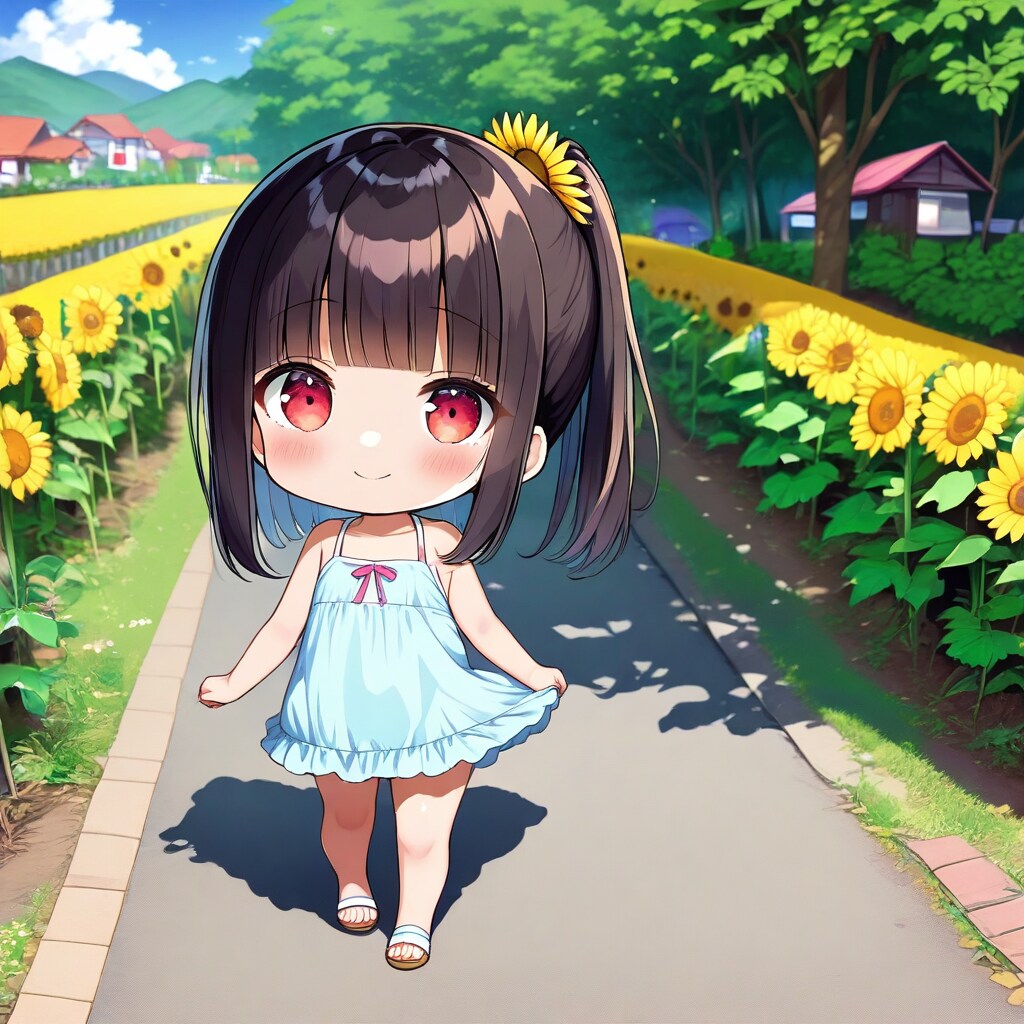ひまわりの咲いた道を歩くよ♪