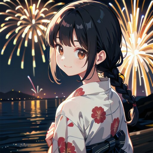 今回は、花火が悪さをして、手に手持ち花火を持って、自分の顔に向けて笑顔で花火を出しているサイコパスな画像が半分程度生成されました。