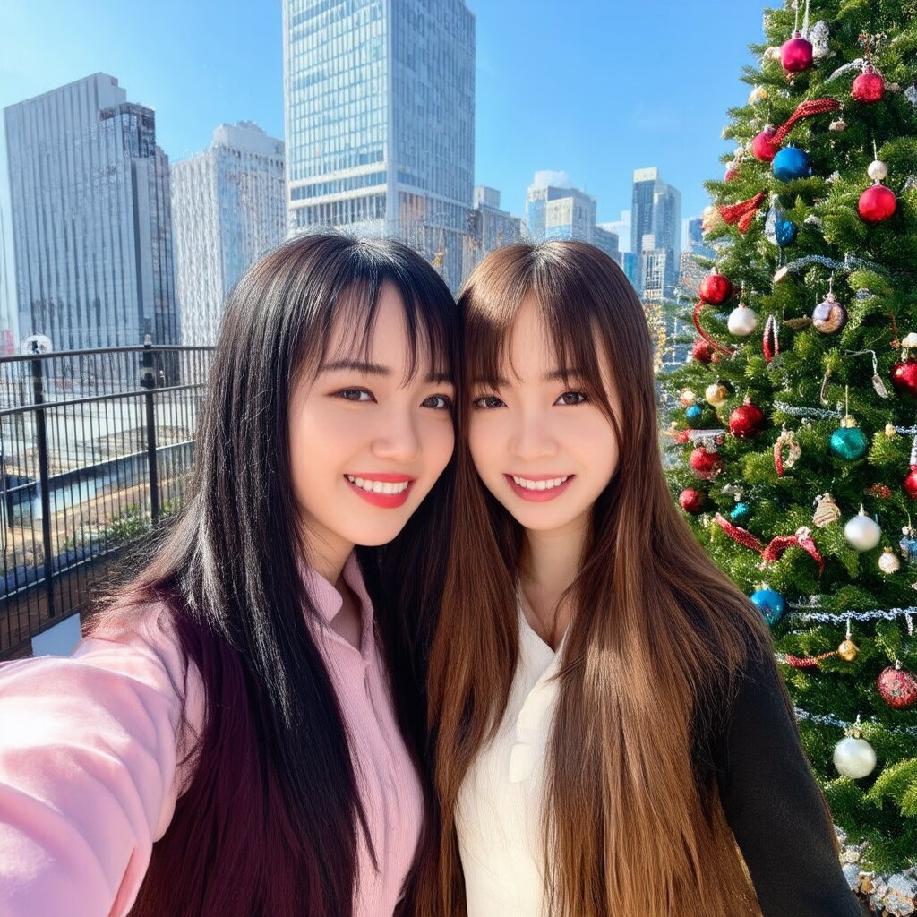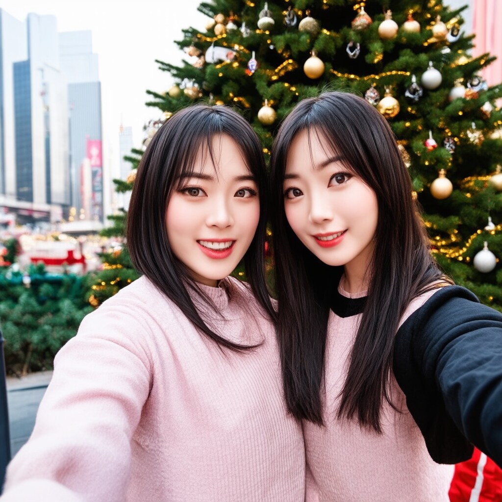 ありがちな「クリスマスっぽい自撮り写真を撮ってきて」という企画をイメージしてGemini系で画像生成しました