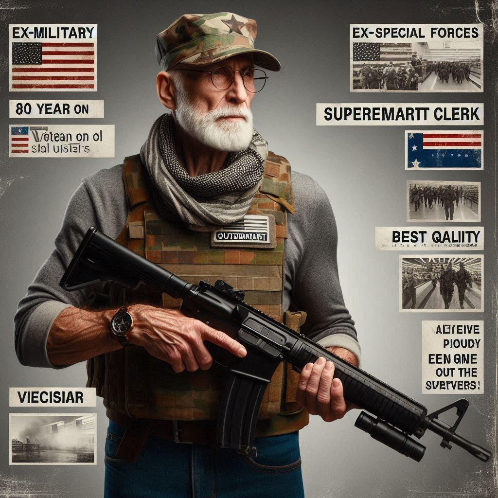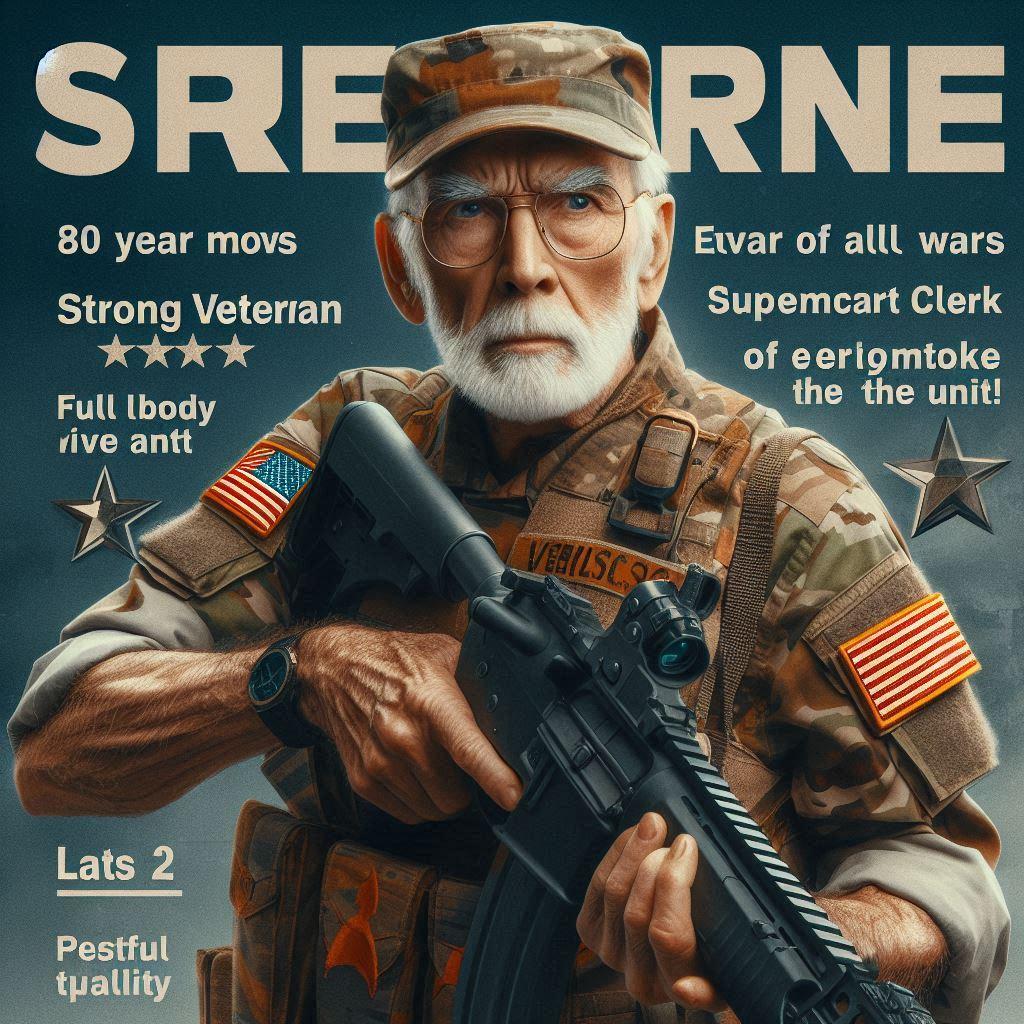 少し前に、退役軍人のおじいちゃん店員が強盗を撃退!みたいな動画を見た記憶があって、そのイメージで生成してみた「80歳でもめっちゃ強!退役軍人おじいちゃんず(全員、元特殊部隊経験者)」ですww。