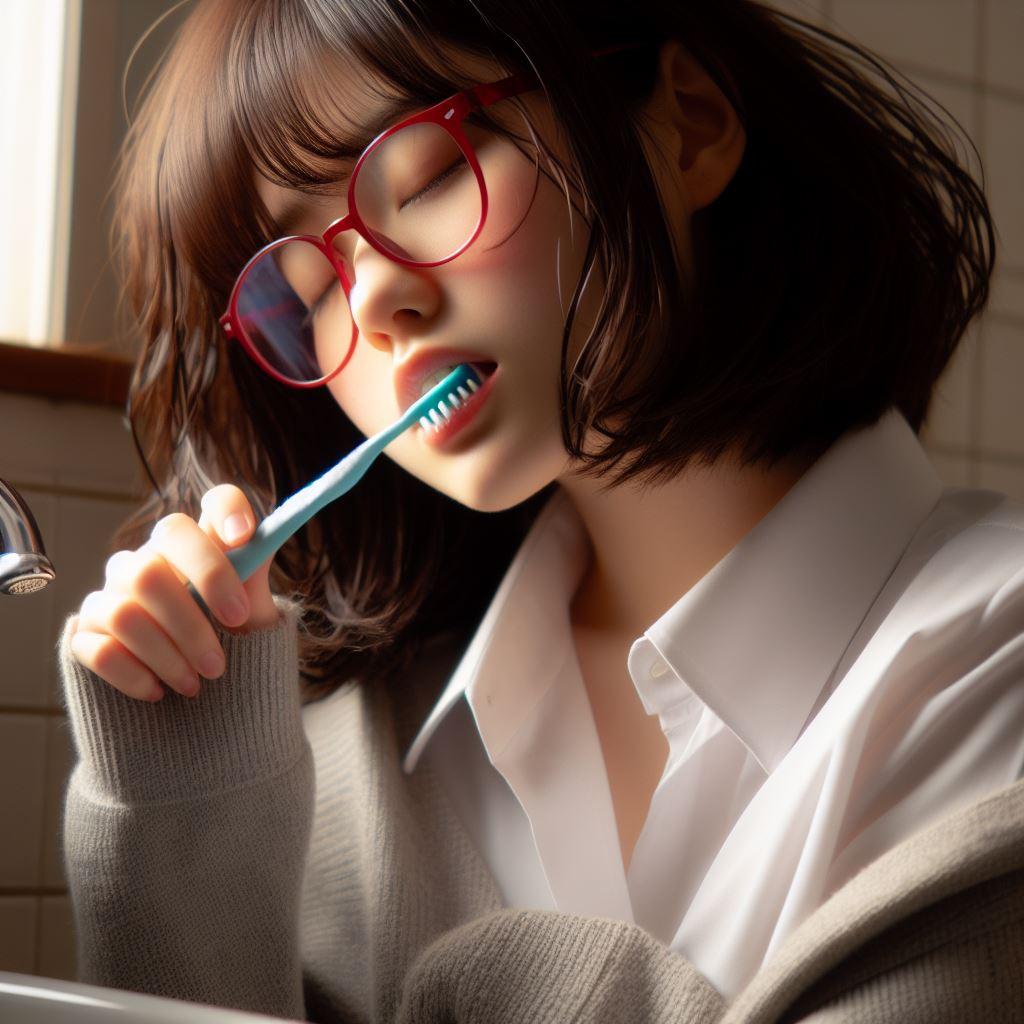 眼鏡女子 楓の朝の歯磨き