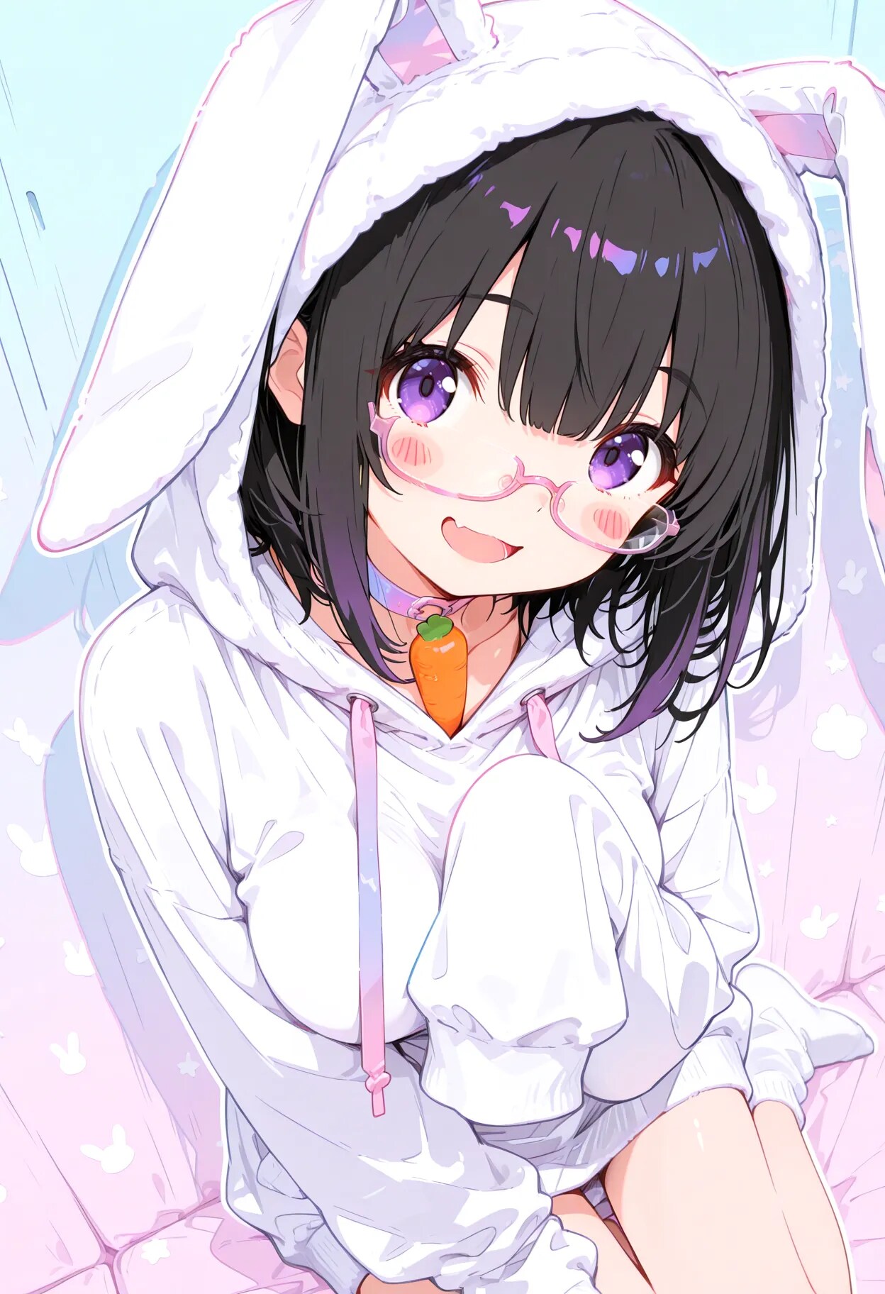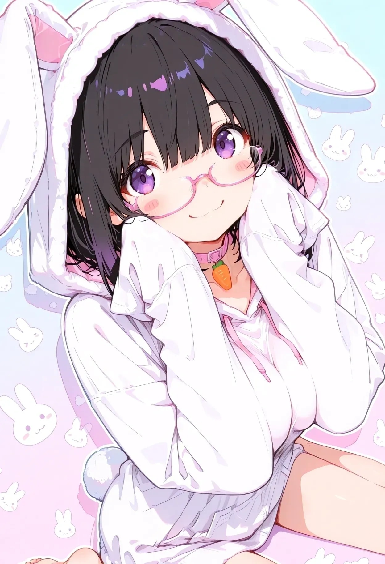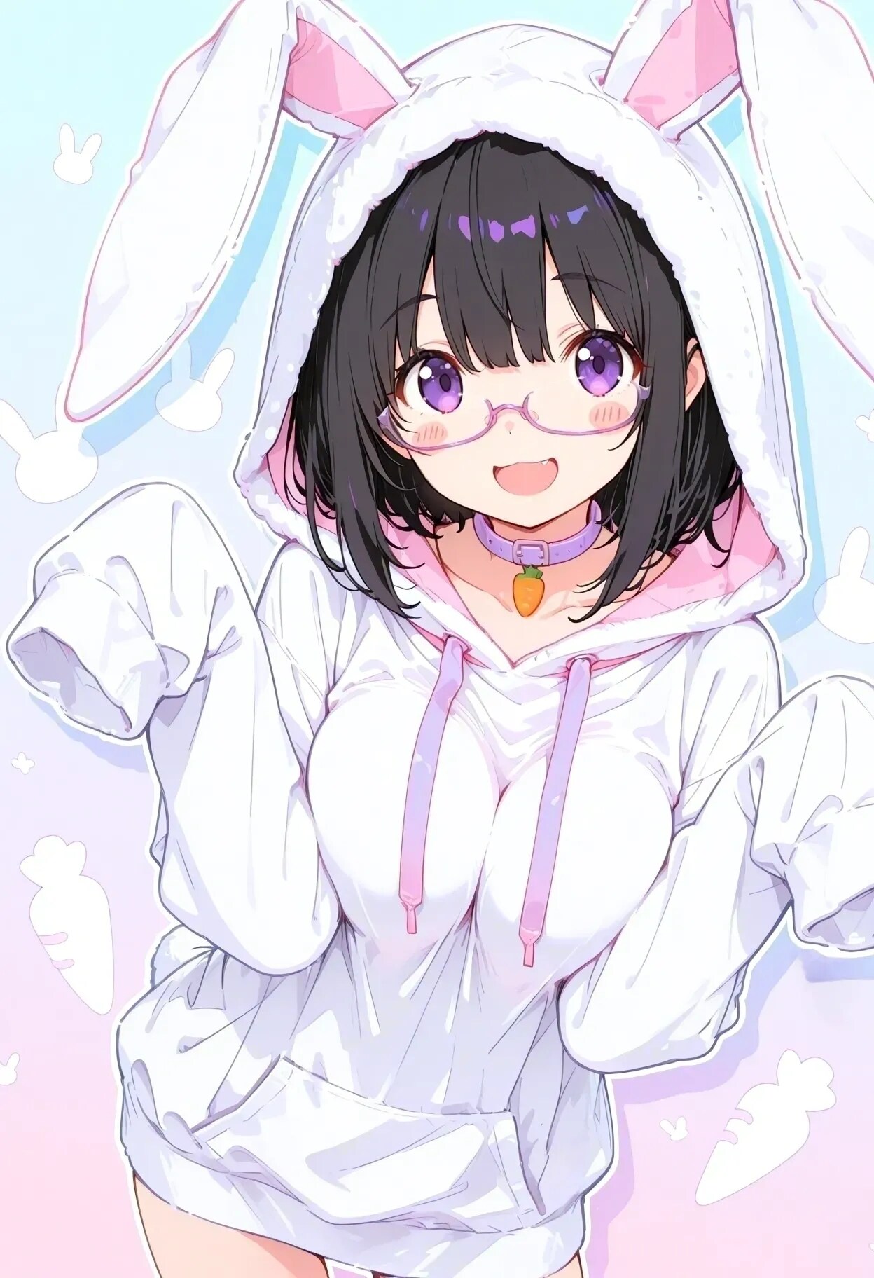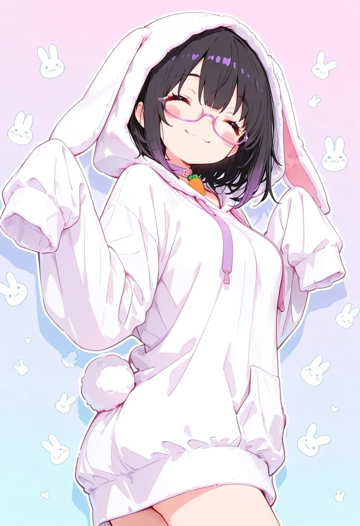 萌え袖うさ耳パーカーの眼鏡っ娘