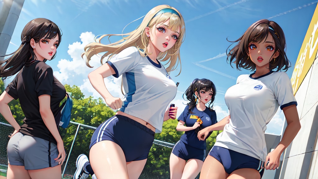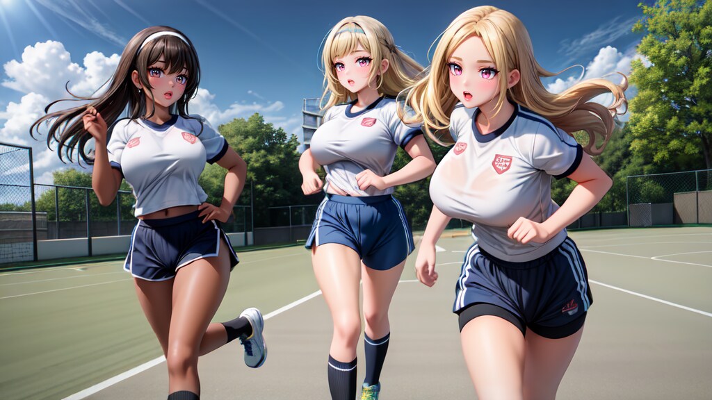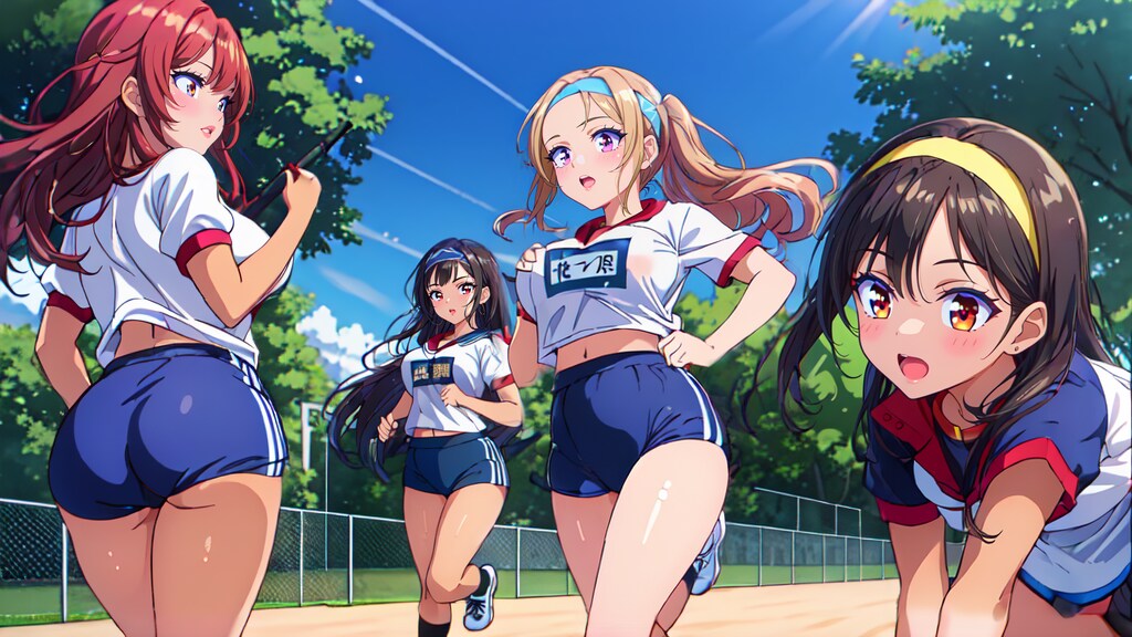 ブルマverも忘れずに作画しました。前回投稿したジャージverのものを服装(ブルマ、体操服、鉢巻き)のみプロンプト変えています。現実には今のご時世ブルマはあり得ないけど(^_^;)