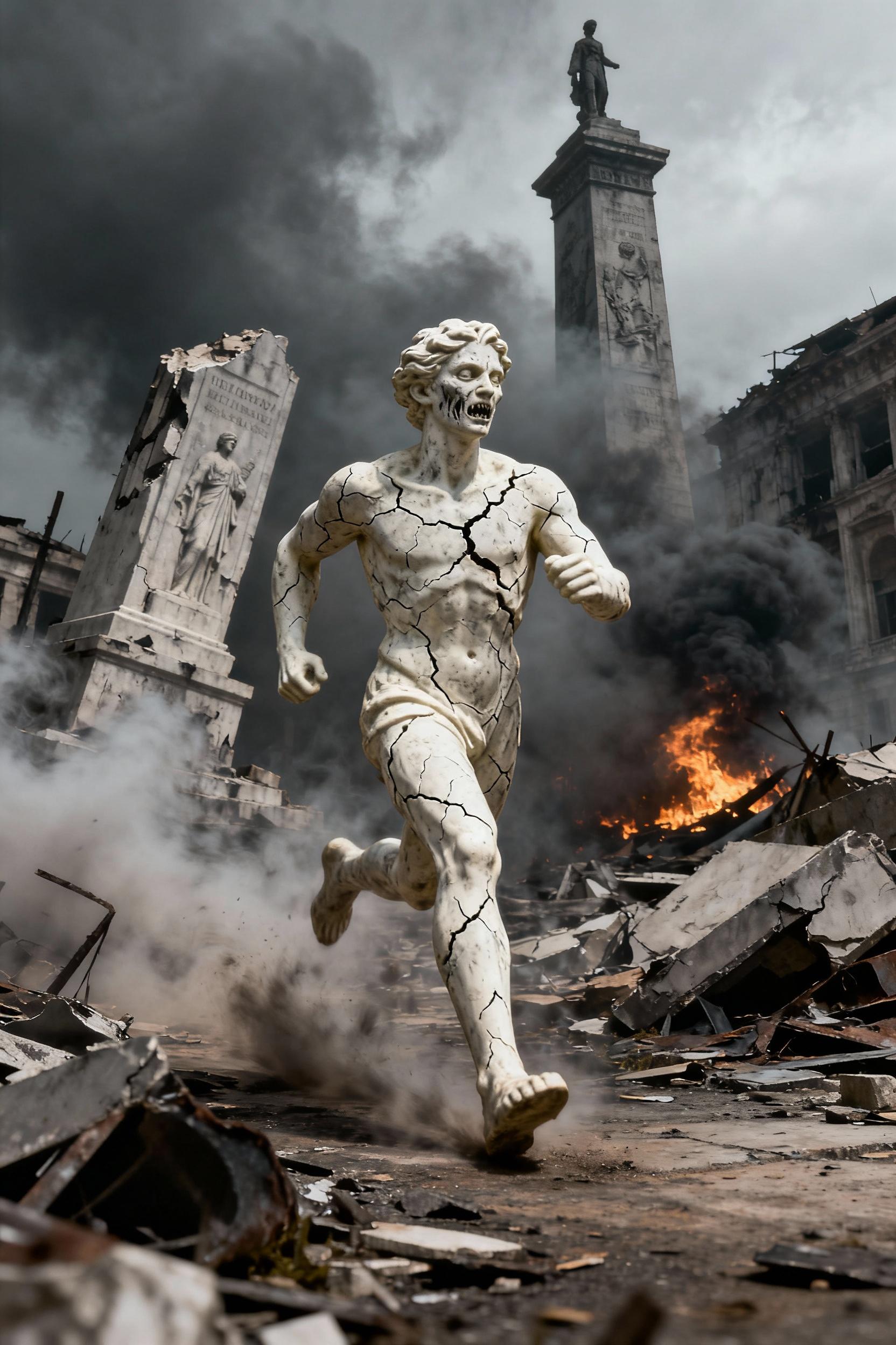 走る一人の奇々怪々な彫像