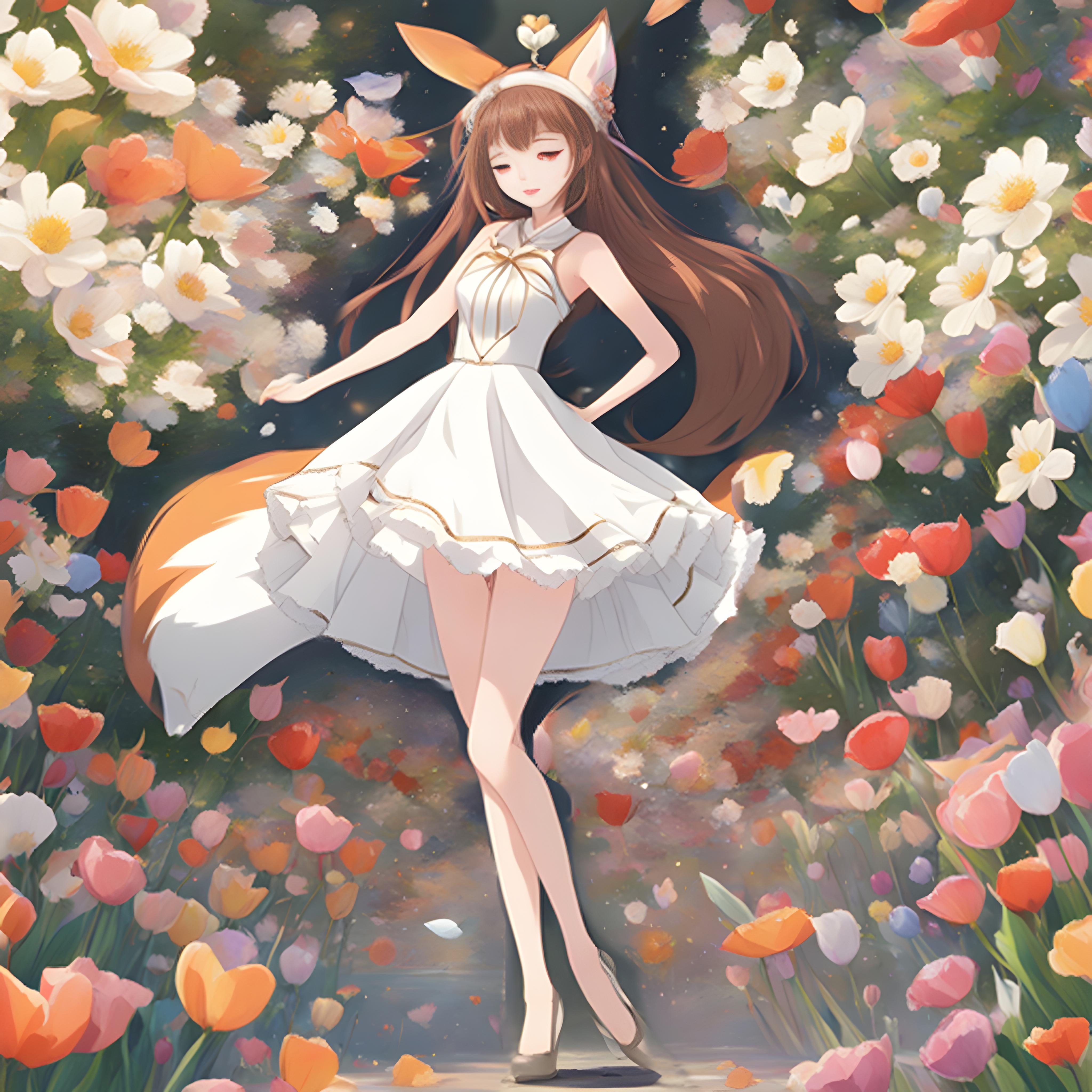 眠りに落ちた○んぎつねのお姉さんは、周囲の花畑が徐々に