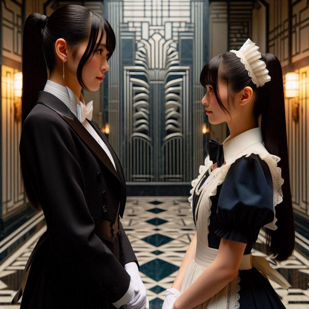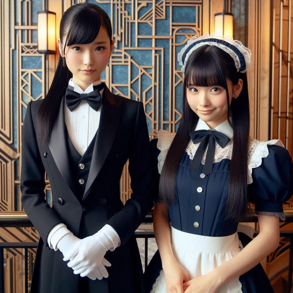 黒髪ロングなメイド1号と黒髪ポニテの執事ちゃん