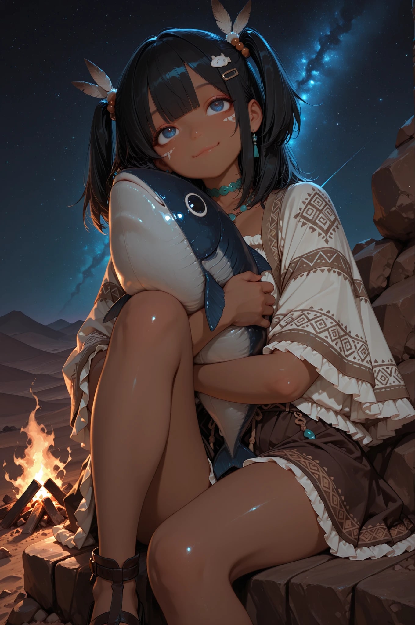 民族衣装+褐色肌(あとケモミミ)いいよね、というアグロさんのコメントを見て、めっちゃいい褐色娘のモデルがいたー!と思い作らせていただきました🐟