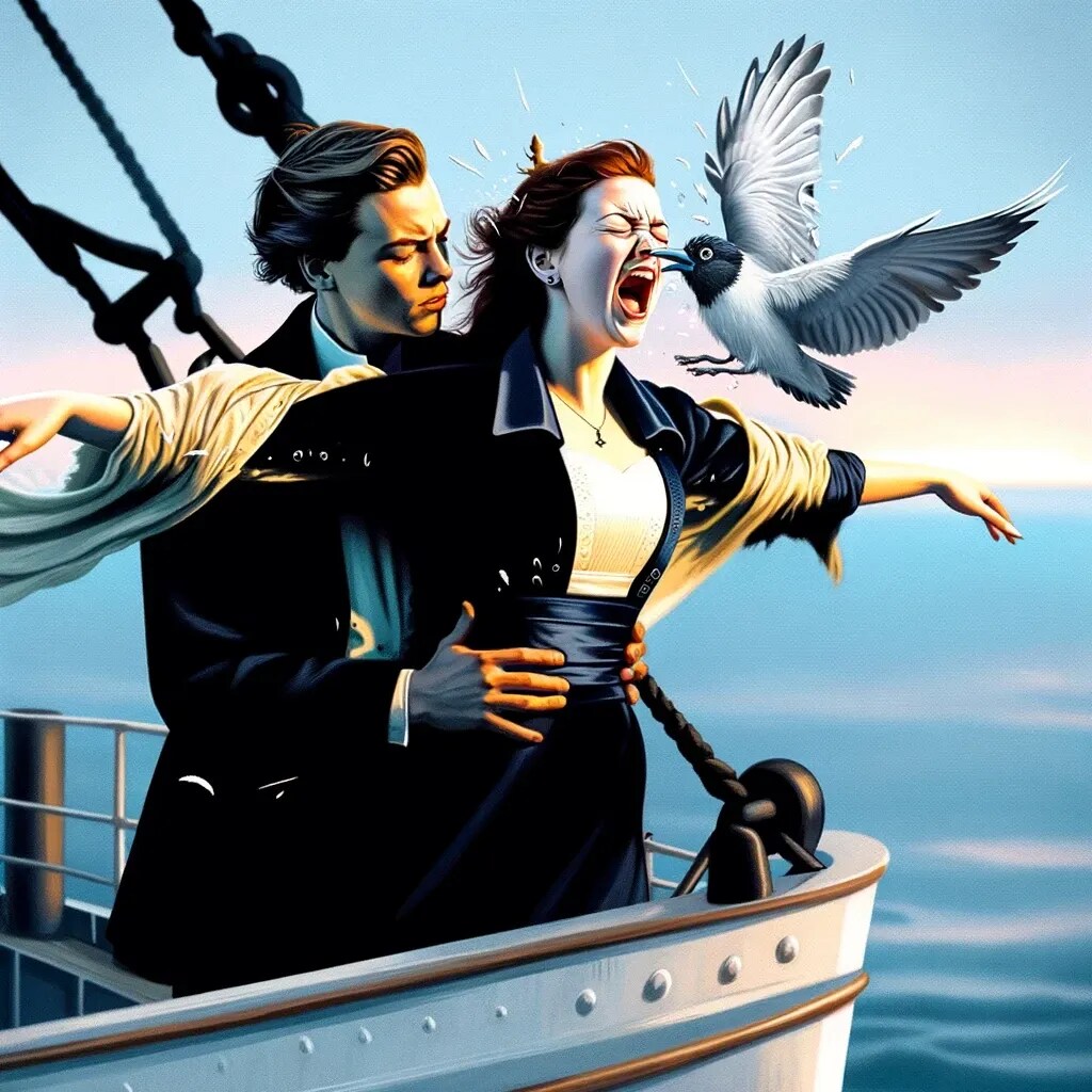海外の有名な写真で、タイタニックを真似たカップルの悲劇的な瞬間を参考にイラスト化してみましたw