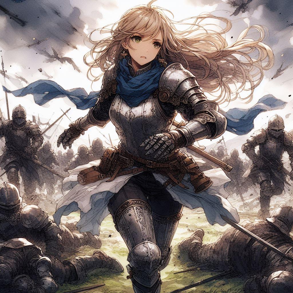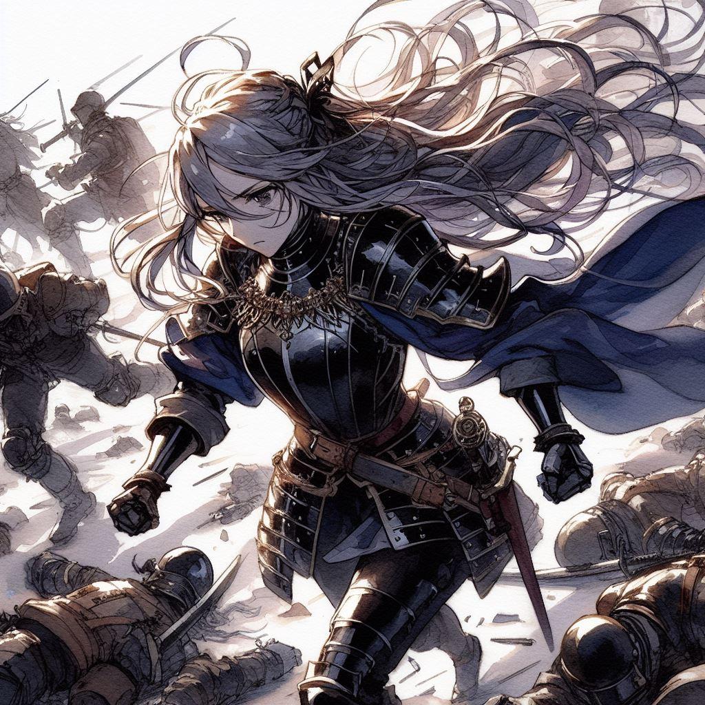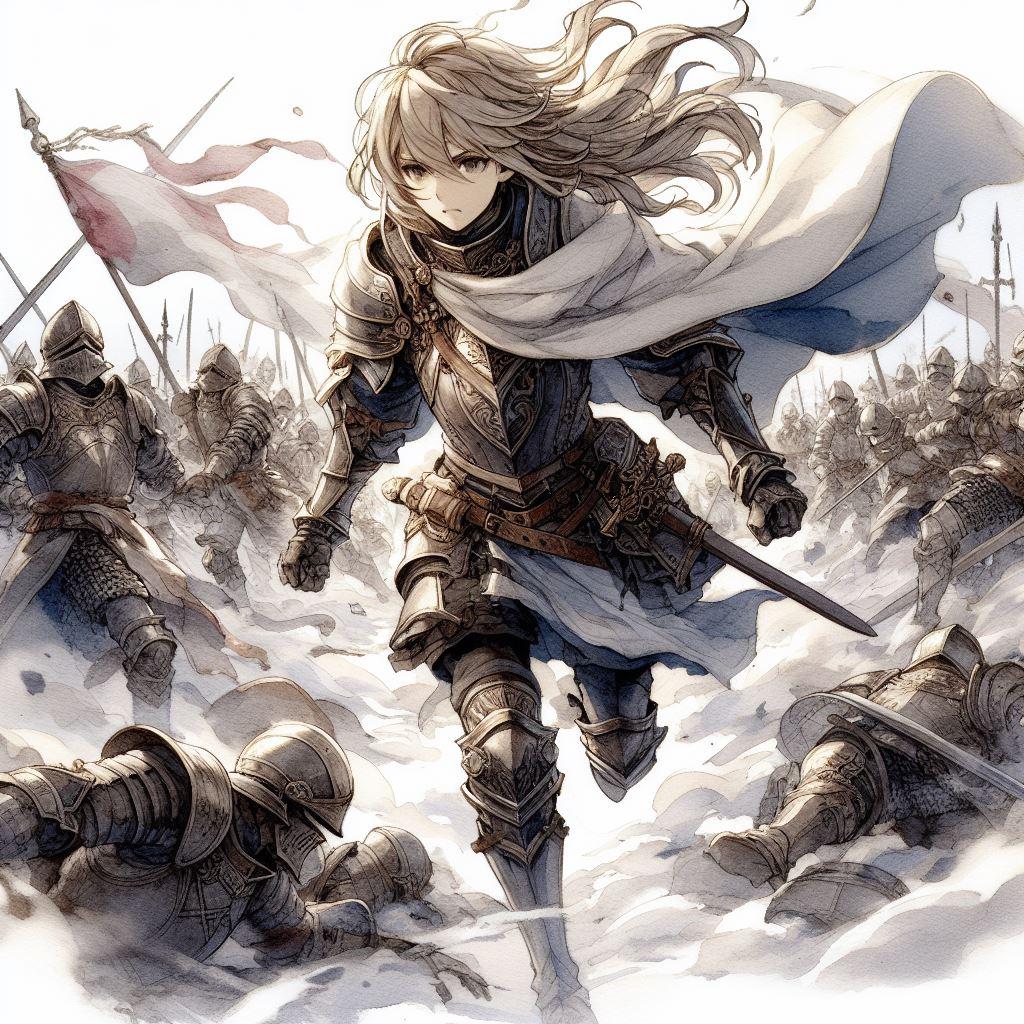 周りの仲間が倒れても、その志を持って走る騎士を描写しました。